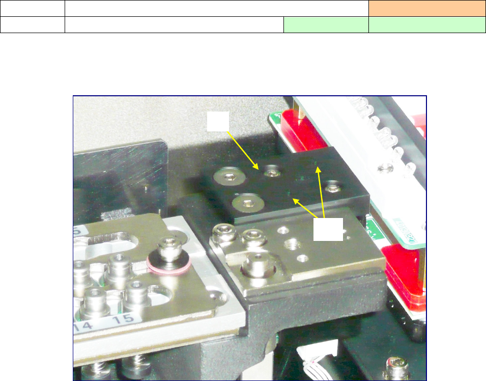 1) 检查 CAL 块①的上面和第一标记②上有无灰尘等异物,有异物时请进行清扫。