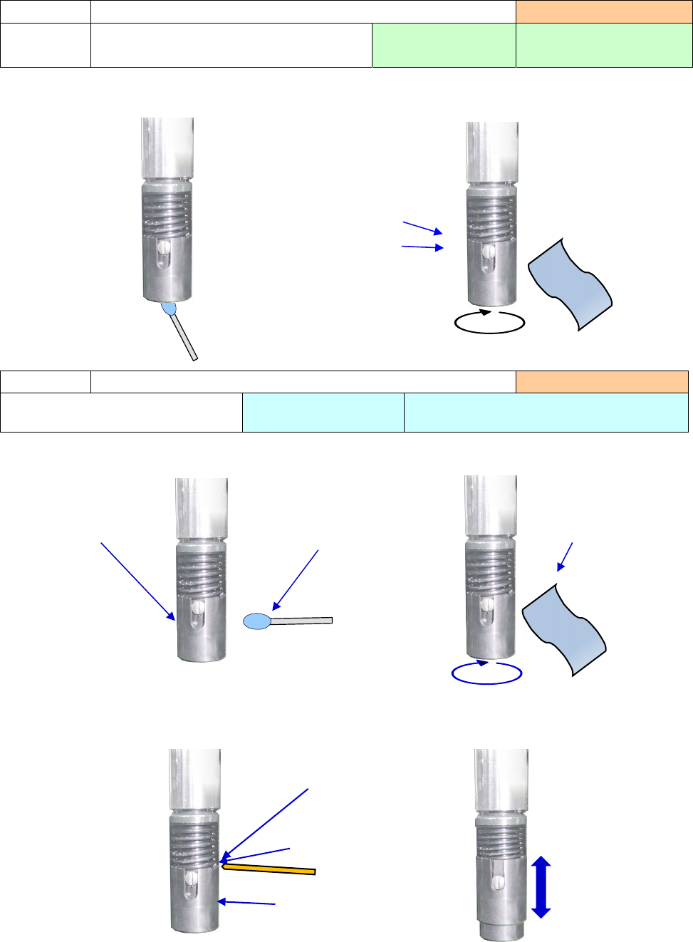 操作手册 3- 16 吸嘴用超声波清洗后放置下来,可能会使吸嘴内圈生锈。 请按下列顺序,在吸嘴滑动部上油。 1) 清洗后,用气枪等把吸嘴内部的酒精吹干净。 2) 在图示的润滑油涂抹部分(把吸嘴滑动部向 方向推入时从吸嘴内圈蹦出的 部分), 用半湿的棉棒涂上一滴油。 3) 把吸嘴滑动部分上下滑动 20 ~ 30 次,使润滑油涂布均匀。 4) 用干净抹布,把吸嘴周围多余的油擦干净。 5) 涂油后,请把吸嘴放回 ATC 单元,执行「机器设置」…