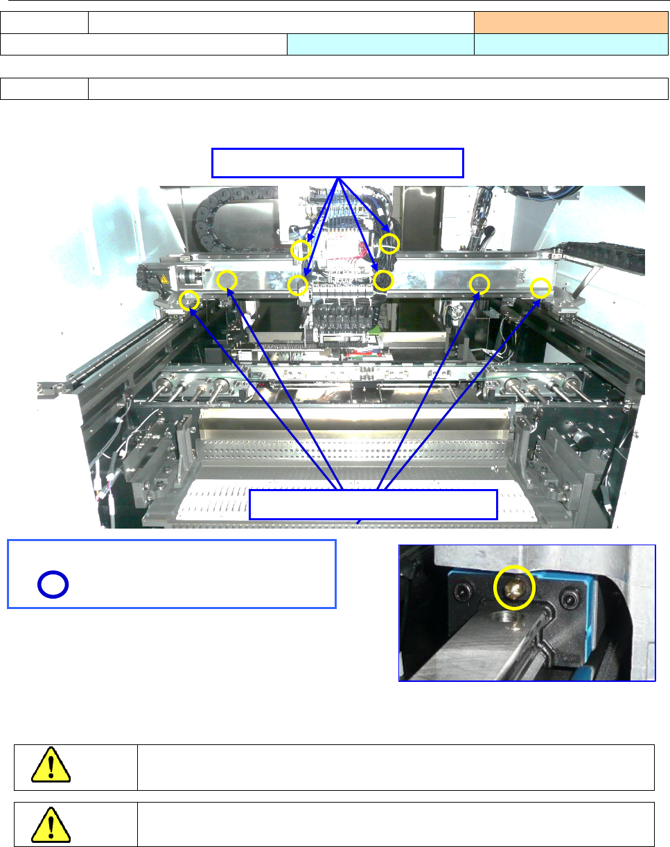 操作手册 3-22 清扫部位 3-2-13 切带刀刃 实施频度:每 6 个月 清扫内容 清扫切带刀刃的脏污 使用工具:绘画笔、六角扳手 使用润滑油: 6459 润滑油 ※清扫刀刃时,请戴上防割手套 进行作业。 1) 作业前,请关闭装置的电源。 2) 请戴上防割手套,用棉纱等清扫刀刃。 ( 请涂抹酒精,擦掉老化的润滑油。 ) 切割机装置 切割机保洁和润滑脂涂敷部位 切带刀刃暴露,切勿用手触摸。 警告 可动刀刃 固定刀刃 保洁