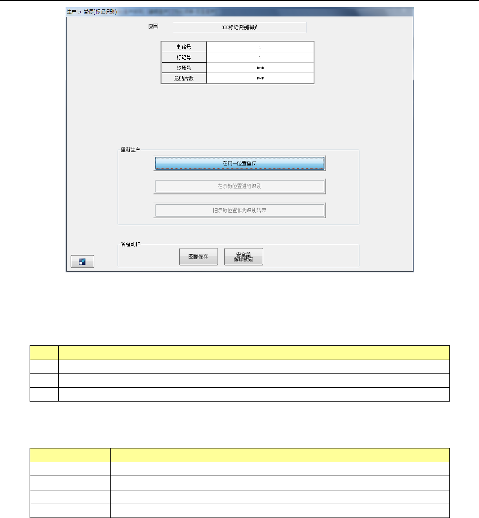 如果在 BOC 标记、基准领域标记的识别中发生识别错误,则会暂停生产并显示下图。