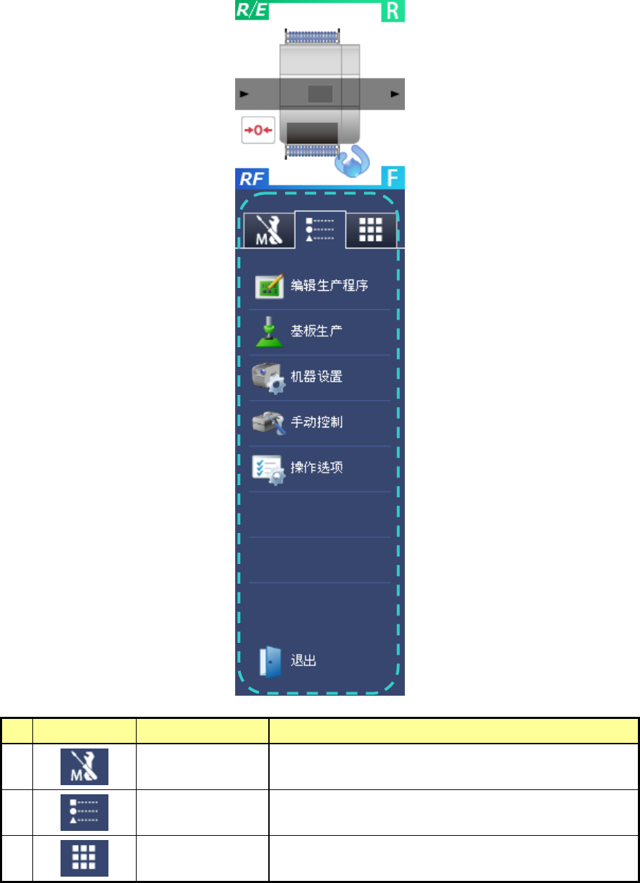 操作手册 1- 15 (2) 信息区域的功能按钮 信息区域的功能按钮配置在以下位置,通过选项卡切换显示使用。 应用程序启动中,有可能任何选项卡都无法选择。 No. 图标 名称 概要 1 维护选项卡 显示个别的维护信息显示菜单。 2 应用程序快捷方式 显示应用程序快捷方式及退出菜单。 3 键盘选项卡 显示软键盘。