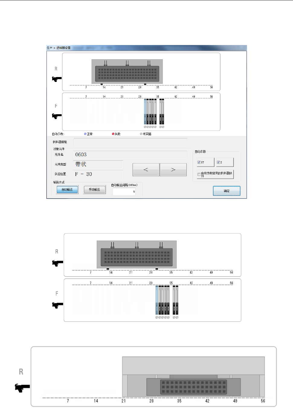 画面上部显示选择的生产程序中使用的供料器的供料器布局。