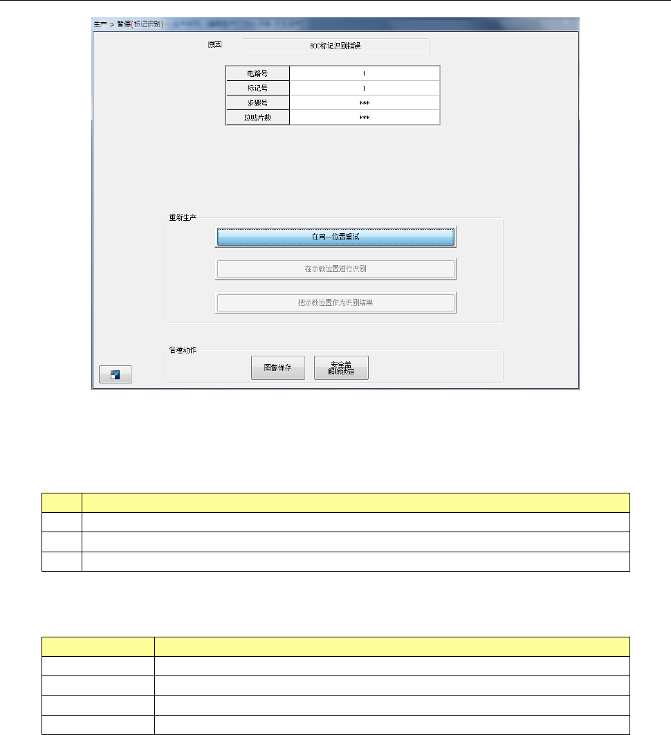 因台架标记识别错误以外的标记识别错误而暂停后,只能选择[再识别]。