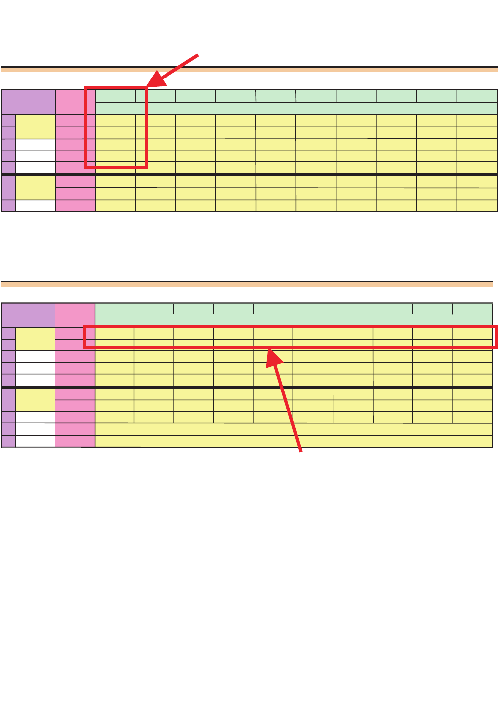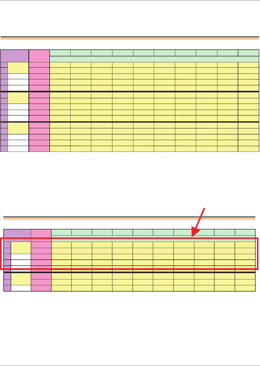 ithin the section for a given test condition, the repeated readings for each part are entered in columns, as shown below.