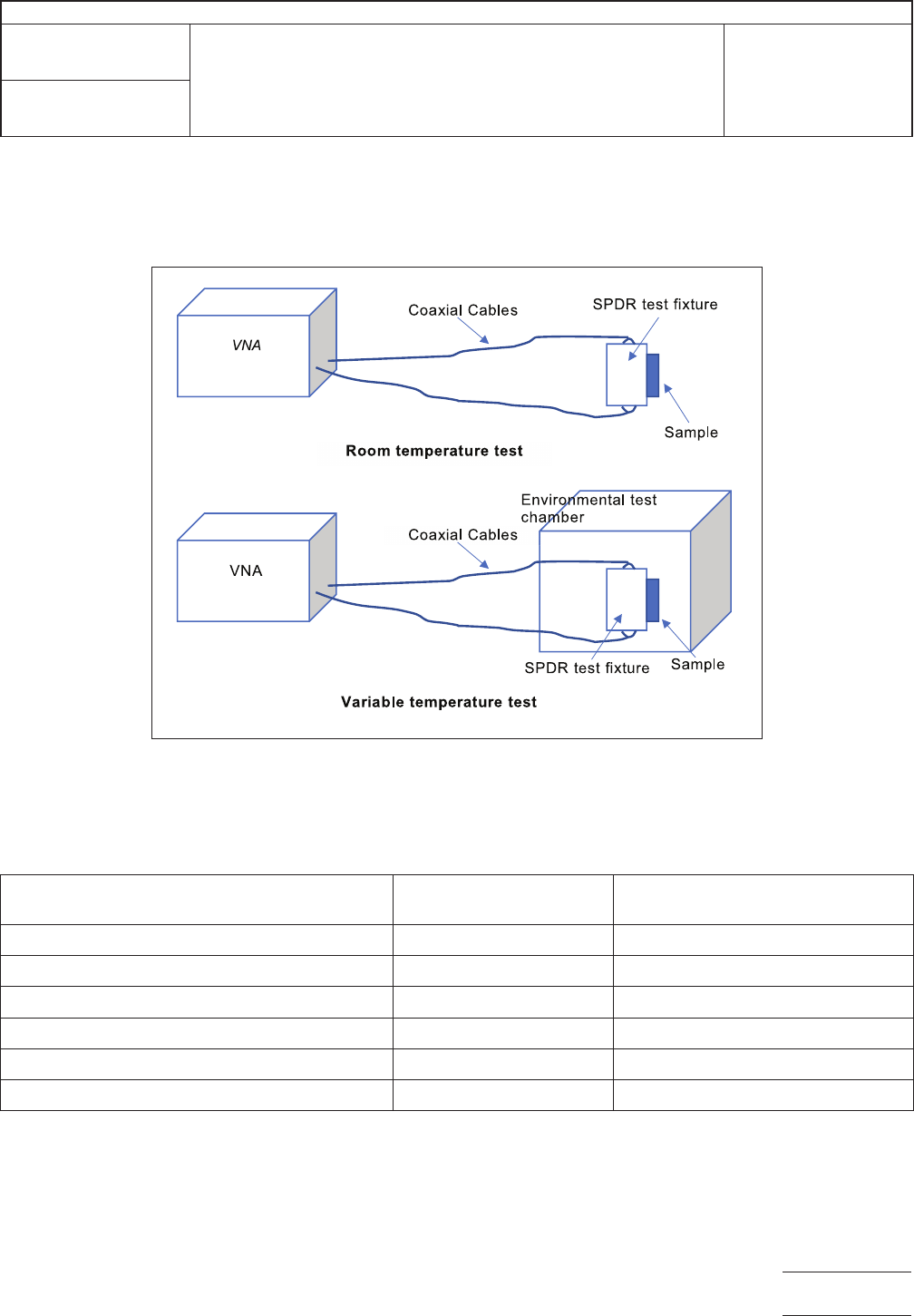 requirements specified in Table 1. For example, if the test frequency is 10 GHz, a SPDR test fixture with 10 GHz nominal frequency
