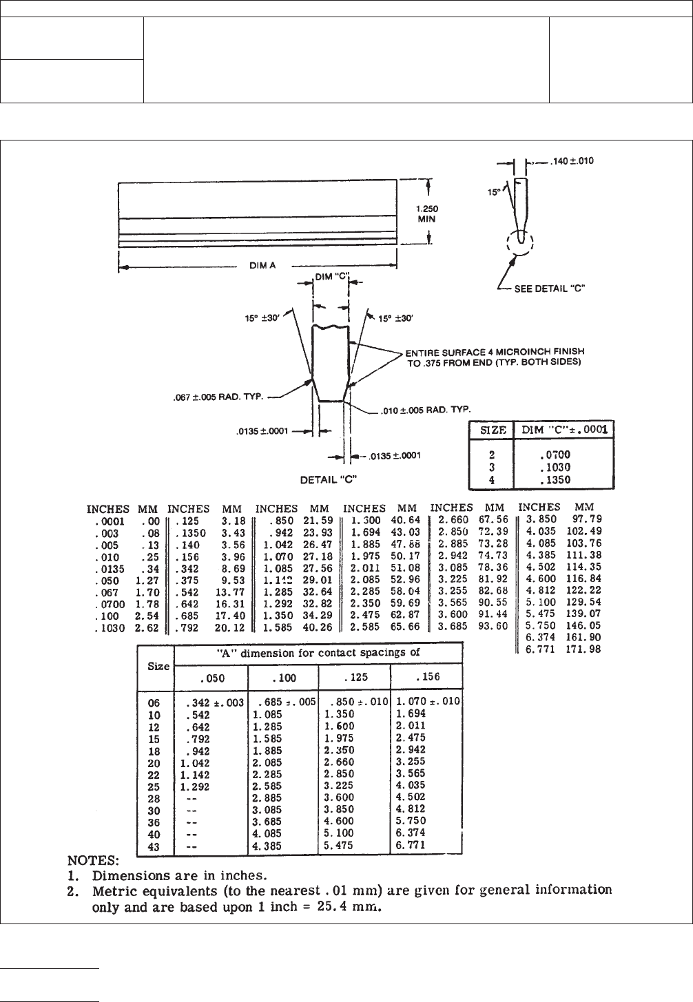 Figure 1 One Piece Edge Connector Mechanical Gages IPC-TM-650 Number 3.4 Subject Durability, Connectors Date 1/83 Revision B P a g e2o f2