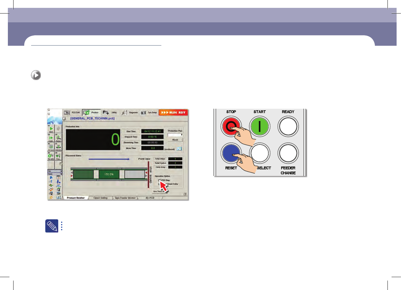 如果设置了PCB生产量后开始生产,即使不选择<PCB Stop>复选框,设备也