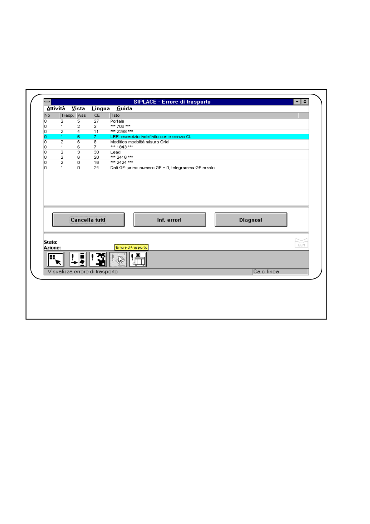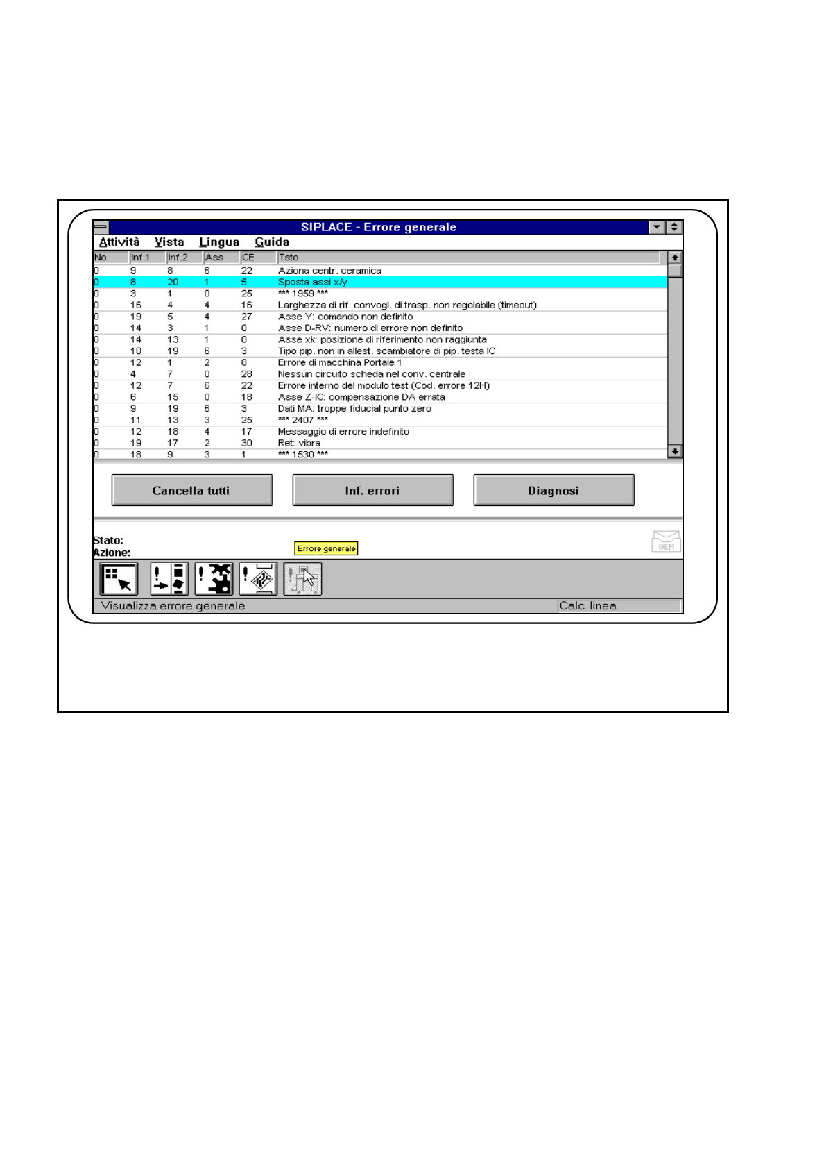 gnosi dell´errore selezionato. Vedi il Capitolo 7.2.