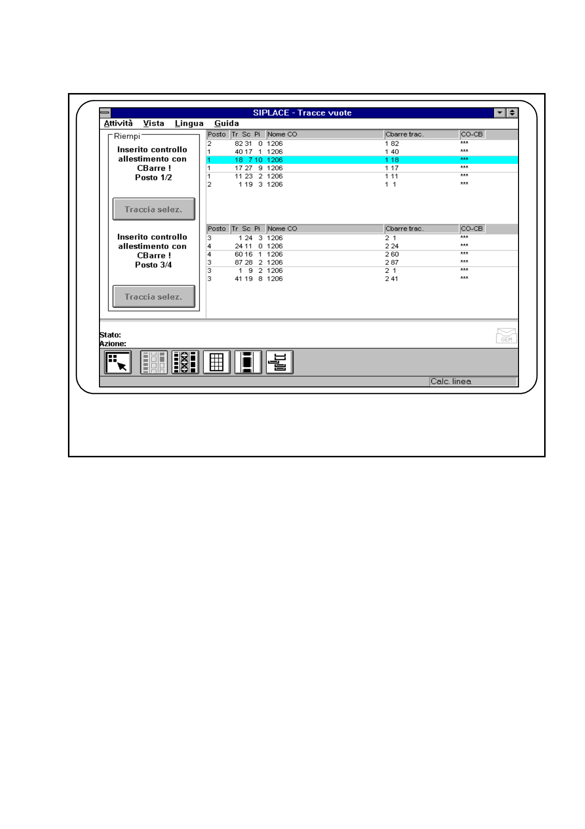 Fig. 3.4.3 Tracce vuote con „Controllo allestimento con CBarre“