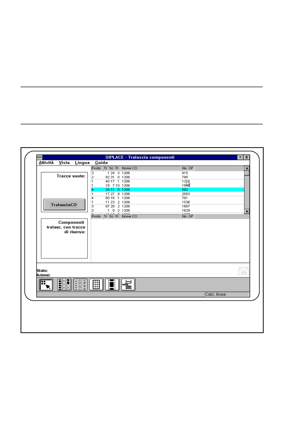 3 Funzioni di montaggio Istruzioni per l’uso SIPLACE 80S-20/F4/F4-6 3.4 Caricatori Edizione 07/97 Versione software dalla SR.403.xx 3 - 26 3.4.2 Tralas cia CO Con la funzione „Tra lascia CO“ potrete fa re uscire in modo …