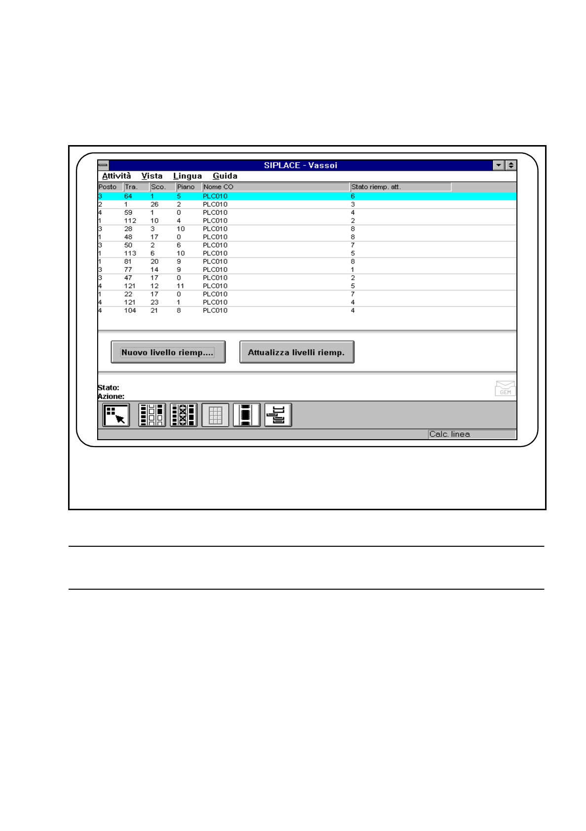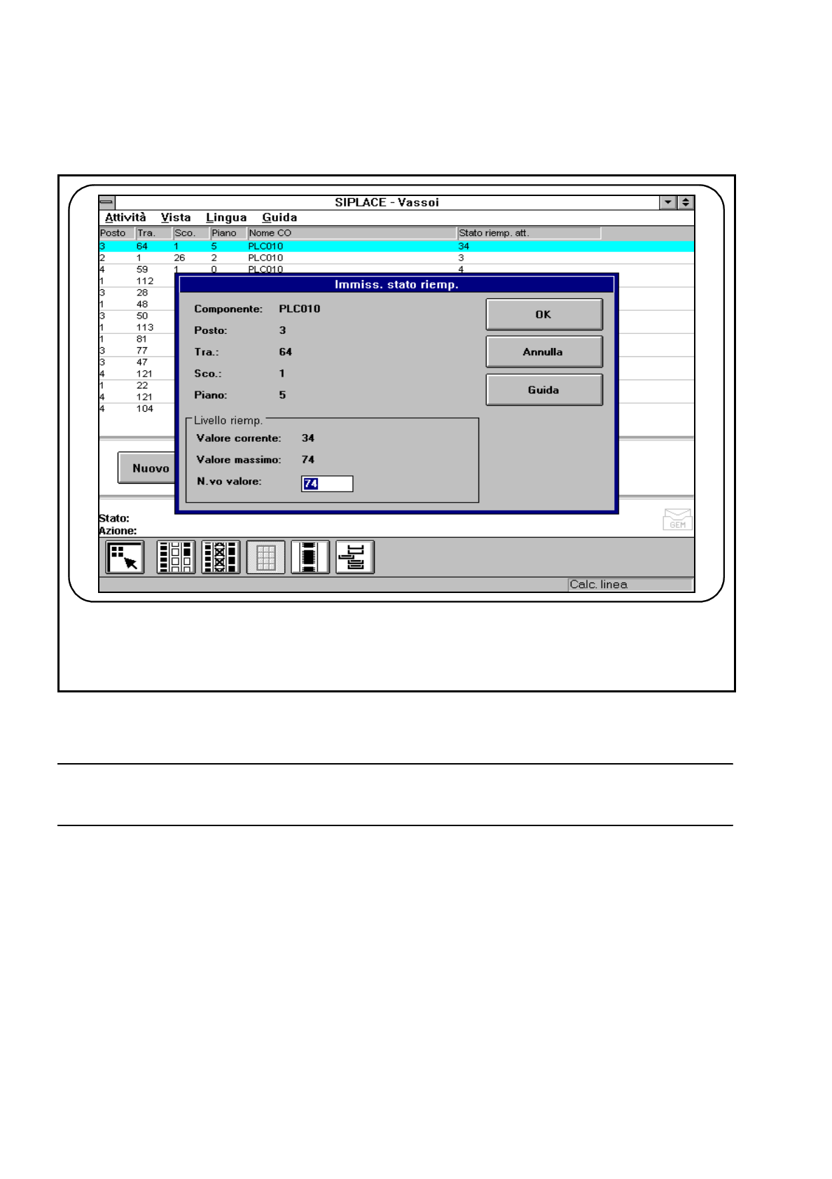 Fig. 3.4.5 Visualizzare vassoi e modificare stati di riempimento