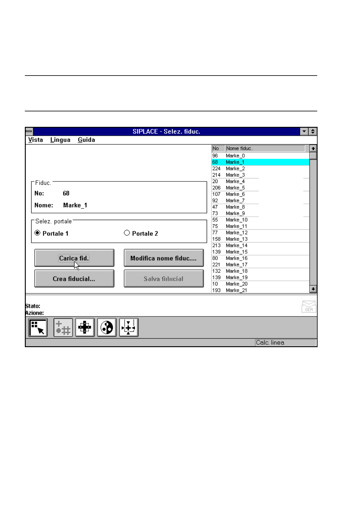 Fig. 5.5.5 Menu „Selez. fiduc.“, opzione „Carica fiducial“