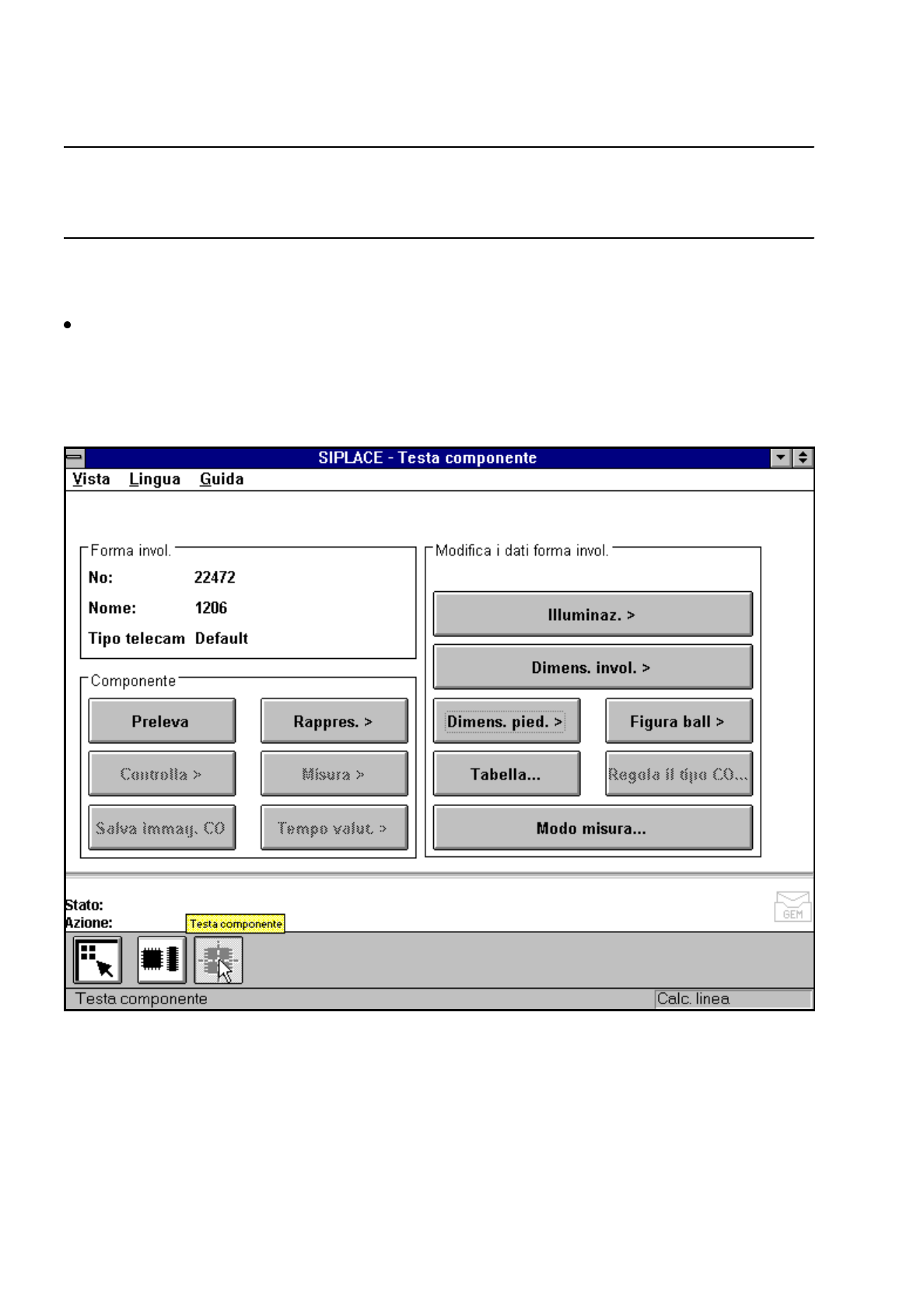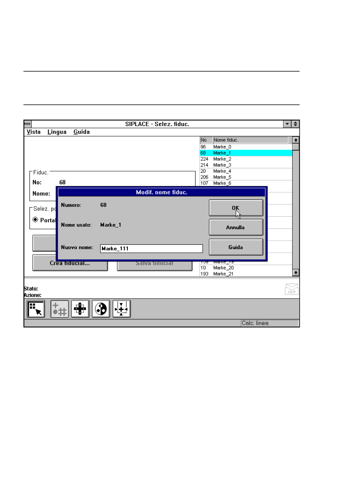 Istruzioni per l’uso SIPLACE 80S -20/F4/F4-6 5 Funzioni Vision Edizione 07/97 Versione software dalla SR.403.xx 5.6 Testa componente Preparato re 5 - 75 5.6.3. 3 O pzione „S alva GF“ Con questa opz ione av rete la poss i…