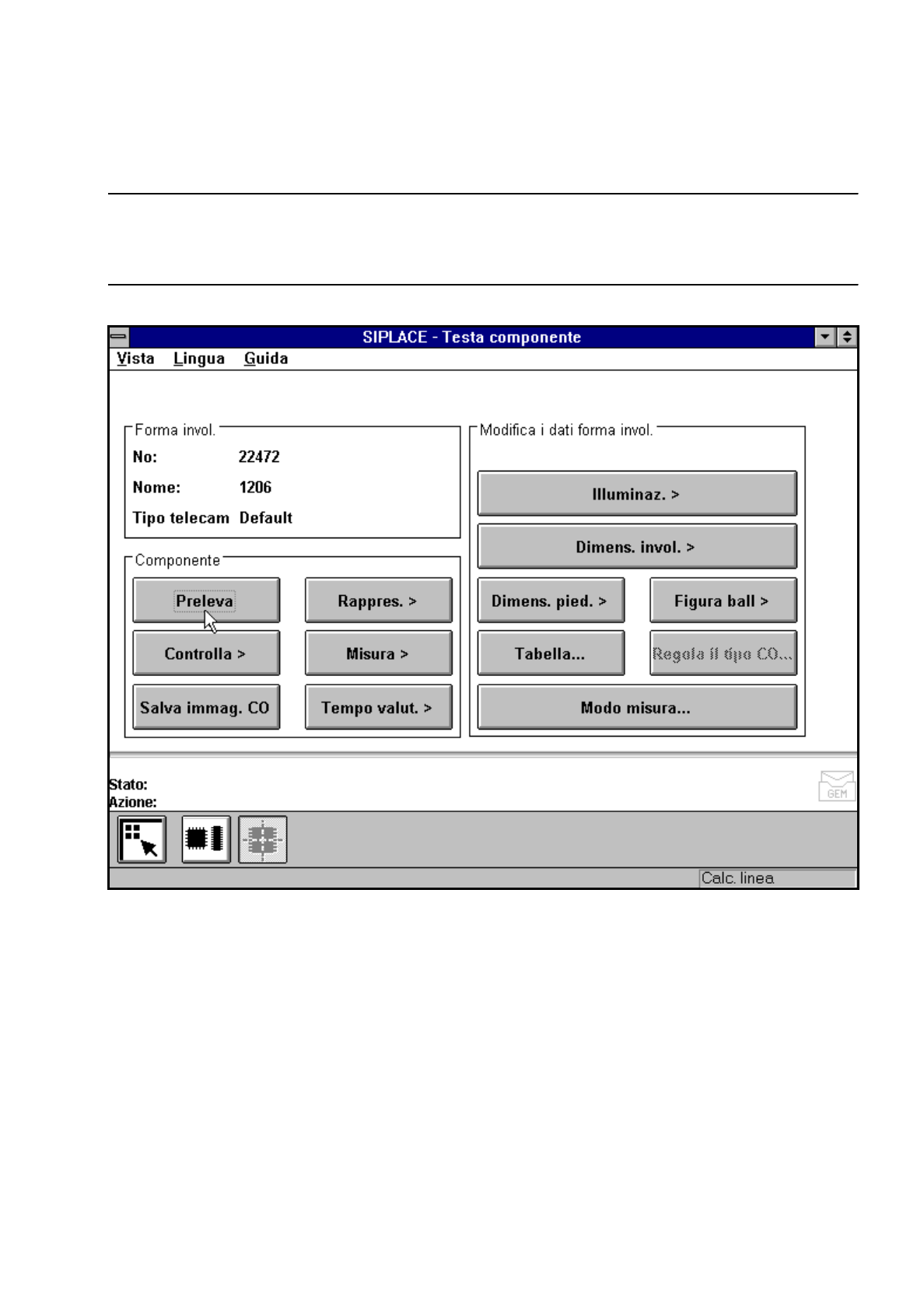 Fig. 5.6.9 Menu „Testa componente“, opzione „Preleva componente“