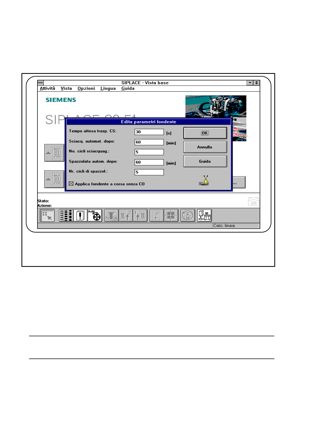 Edizione 07/97 Versione software dalla SR.403.xx 11.7 Lavoro del fondente (fluido) per il SIPLACE 80F4