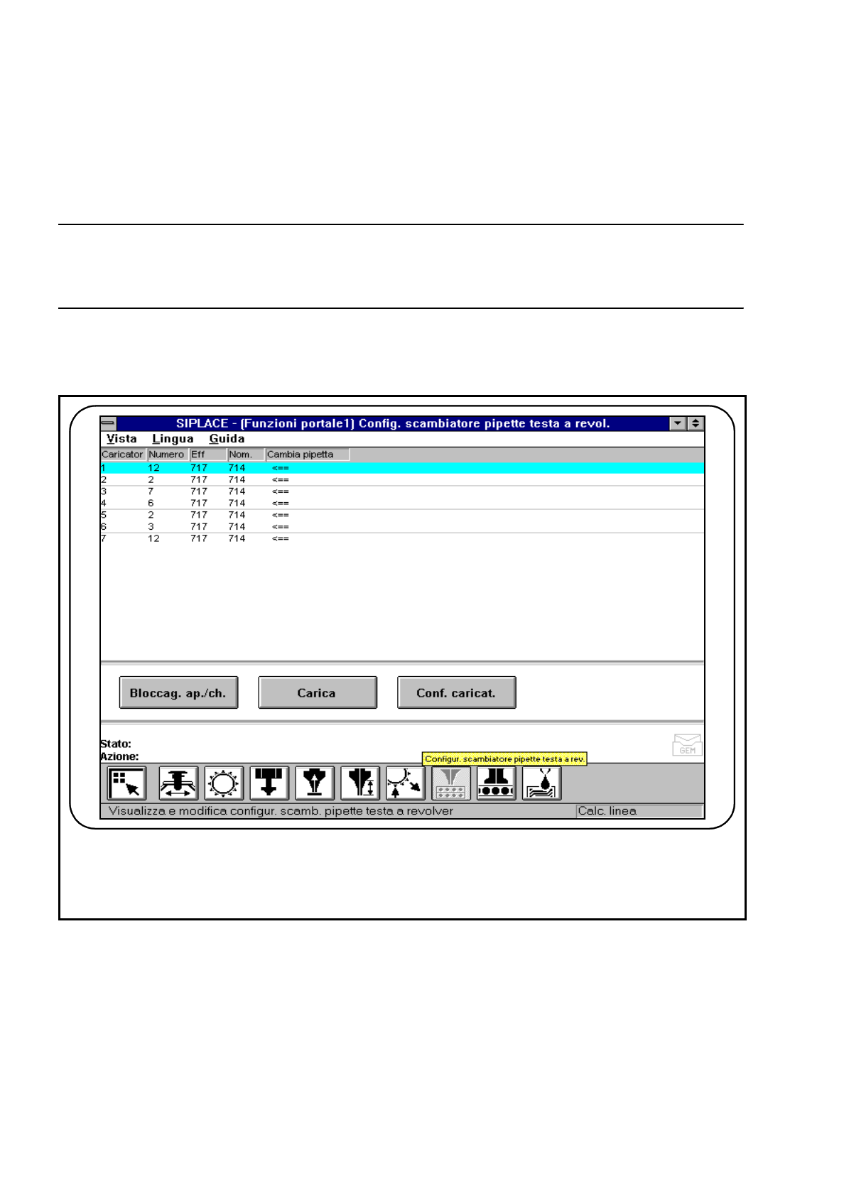 Nella colonna „Eff.“ è indicato l´allestimento effettivo dello scambiatore di pipette.