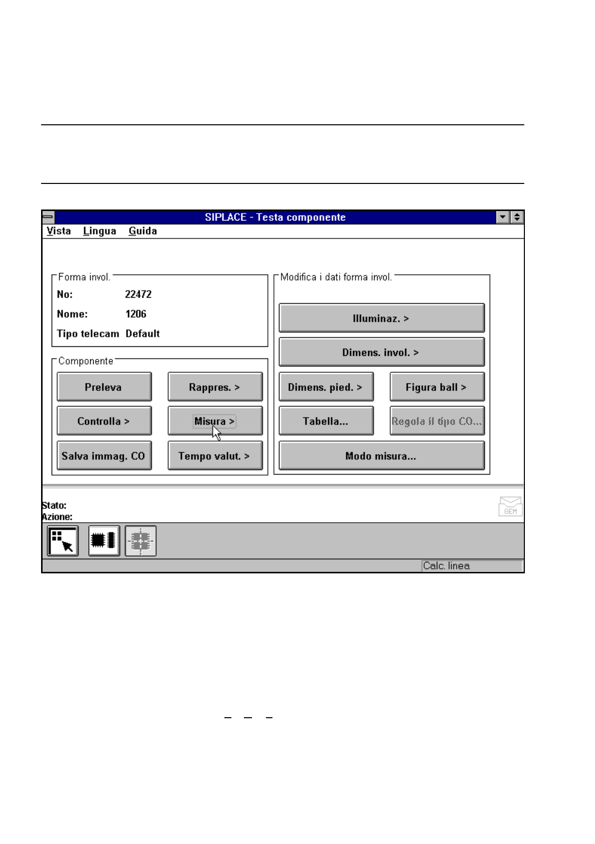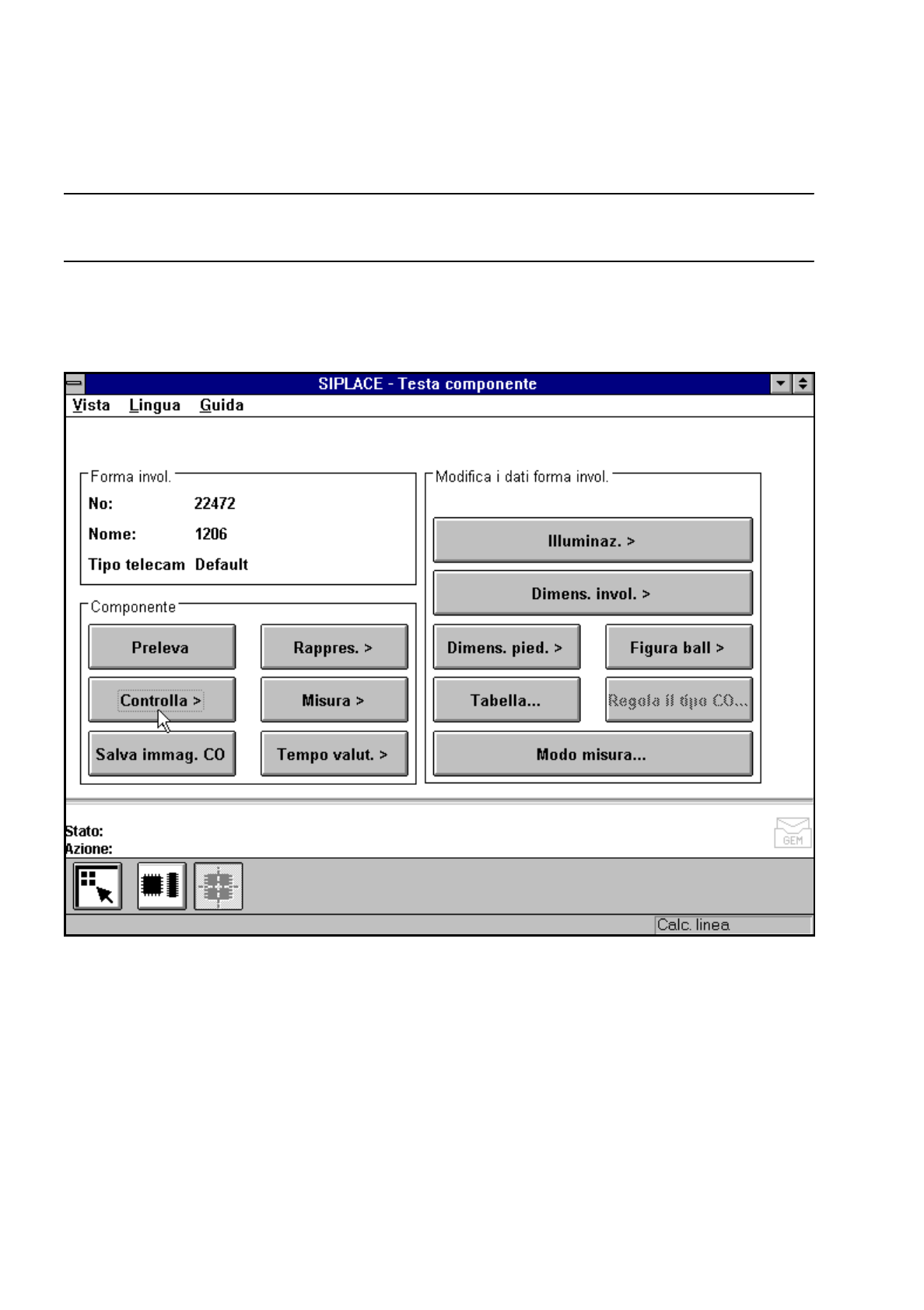 Istruzioni per l’uso SIPLACE 80S -20/F4/F4-6 5 Funzioni Vision Edizione 07/97 Versione software dalla SR.403.xx 5.6 Testa componente Preparato re 5 - 81 Fig. 5.6.13 Menu „Testa componente“, schermata „Controlla CO“ Con i…