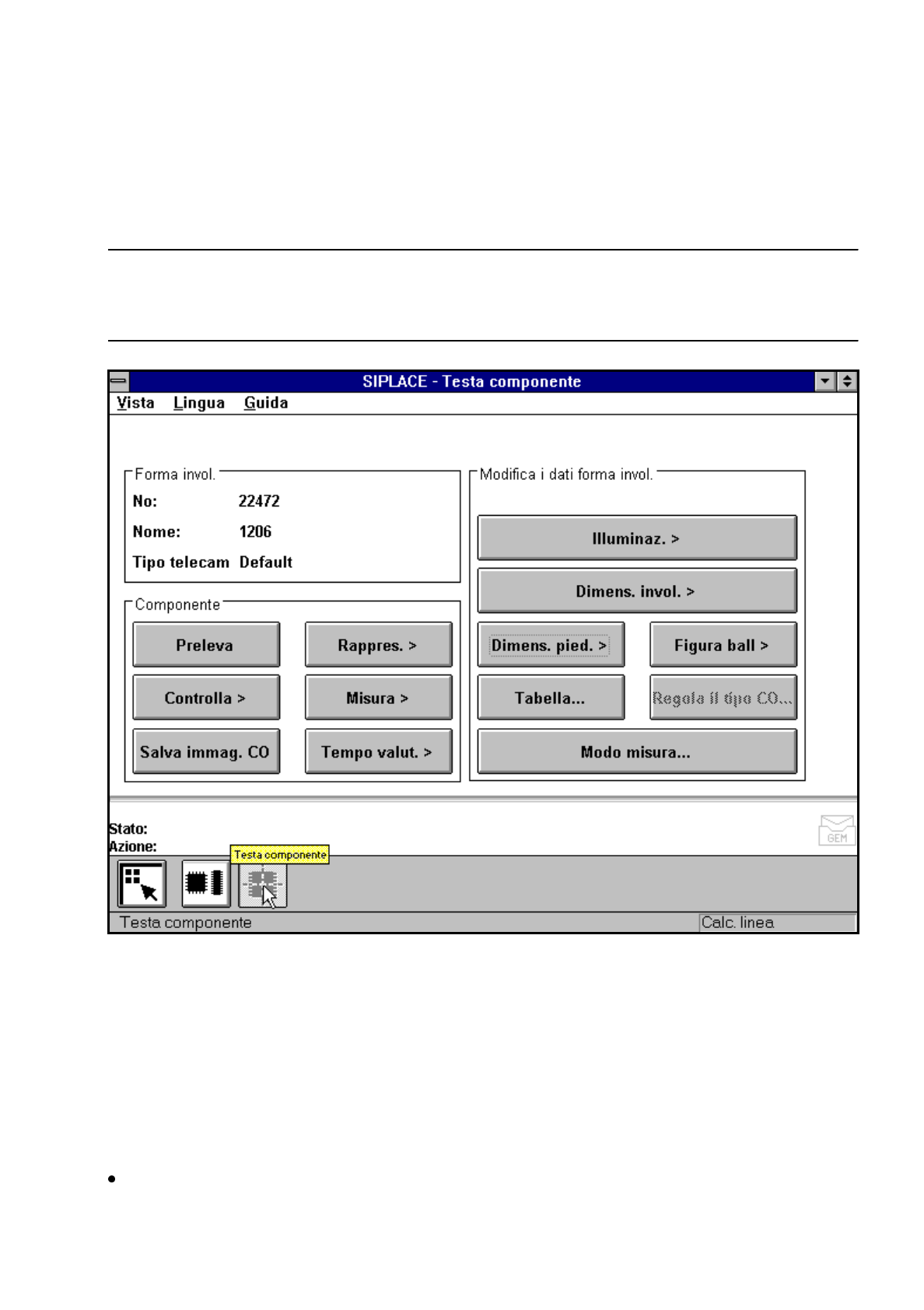5 Funzioni Vision Istruzioni per l’uso SIPLACE 80S-20/F4/F4-6 5.6 Testa componente Edizione 07/97 Versione software dalla SR.403.xx 5 - 94 Preparato re – la larghe zza o ttica dei piedini in direz ione x ed y de i CO – l…