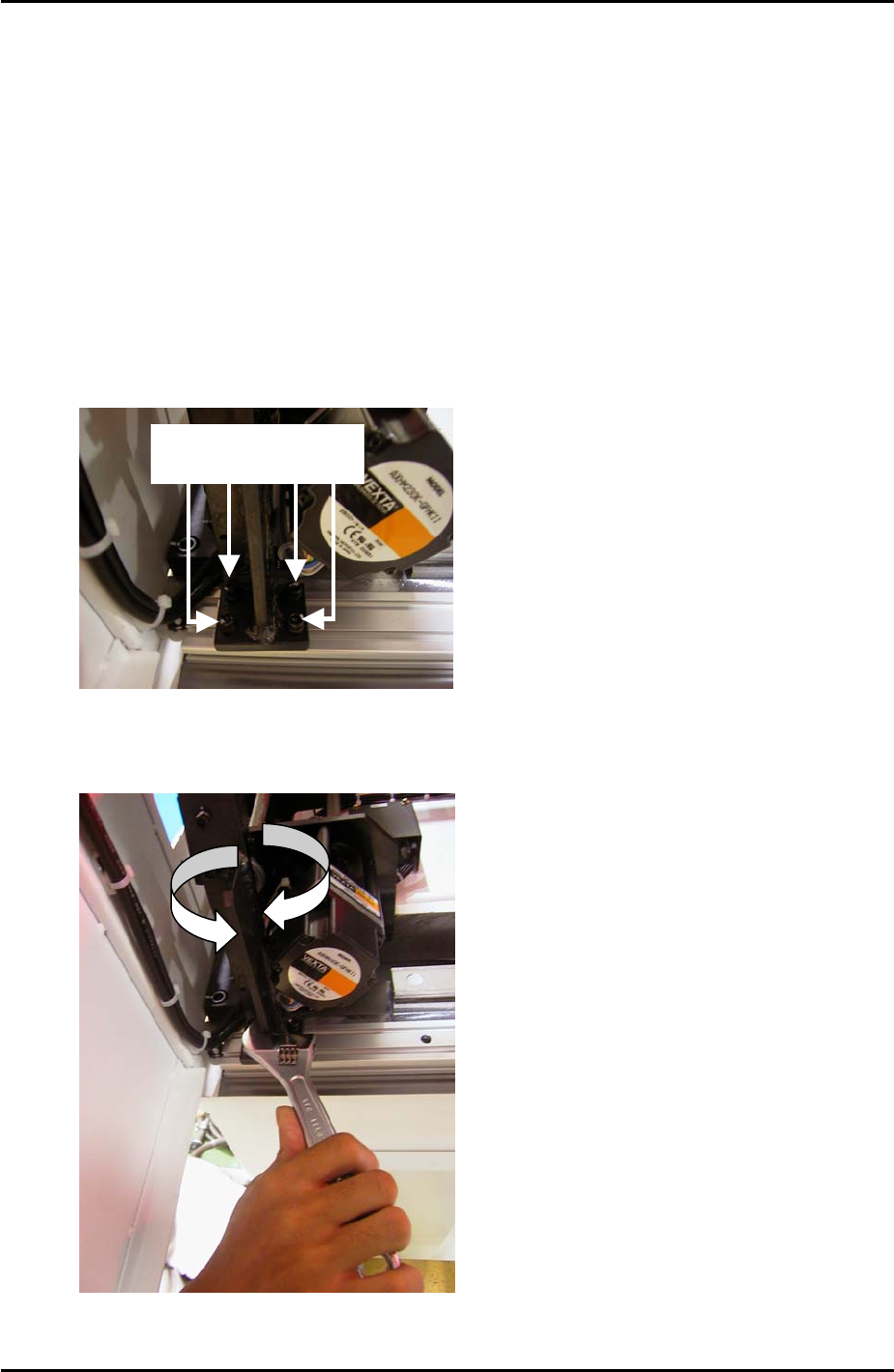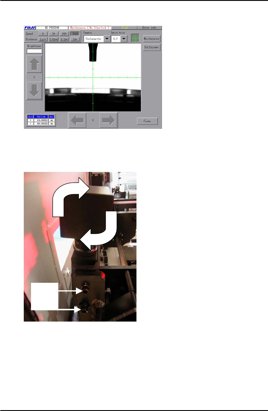 1. Loosen the following two bolts and adjust the coplanarity camera tilt in the X direction: