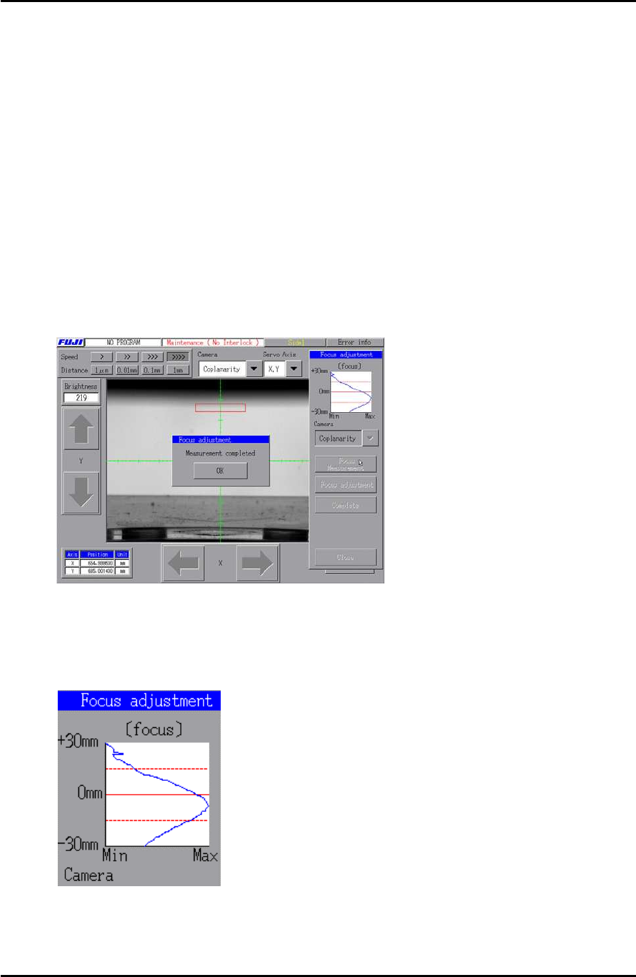 peak on the center 0mm line. Adjust the focus and repeat the measurement until the