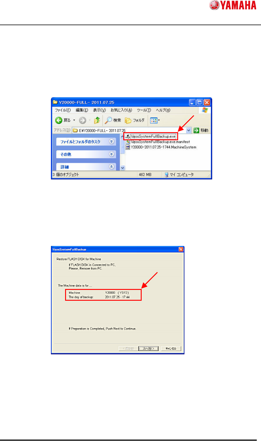 1) システムフルバックアップで作成したフォルダ内にある “VgosSystemFullBackup.exe” を