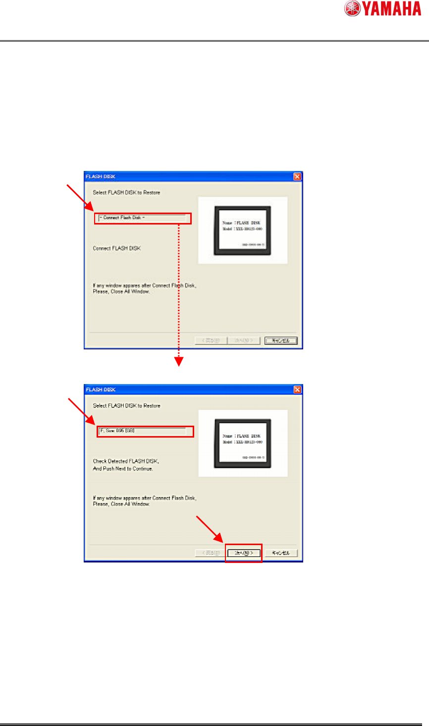 コンパクトフラッシュが PC に接続されている場合は取り外し、[次へ] ボタンを押して下さい。
