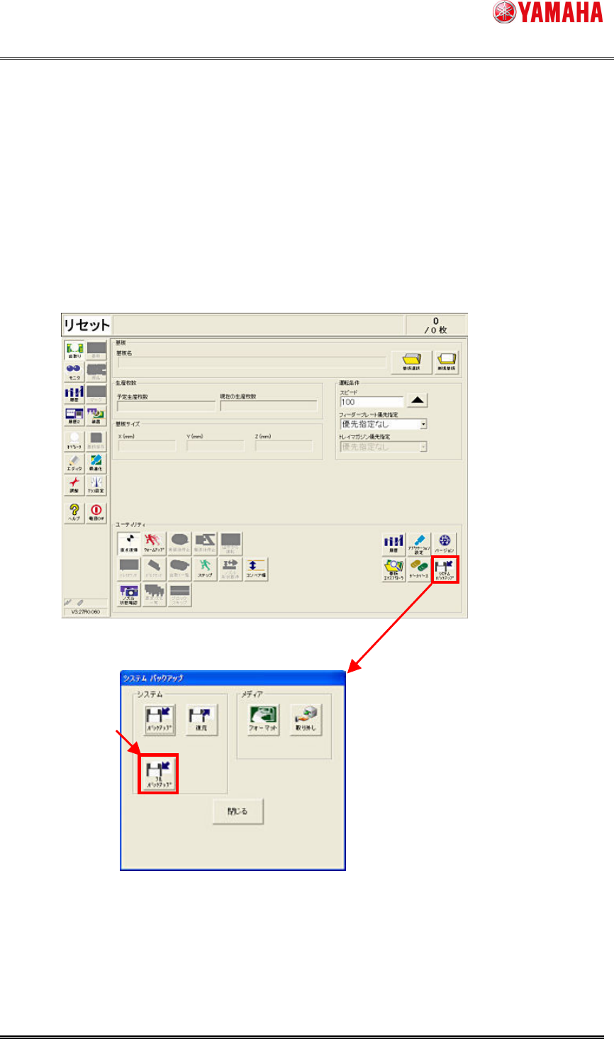2) [段取り]-[システムバックアップ] ボタンを押します。