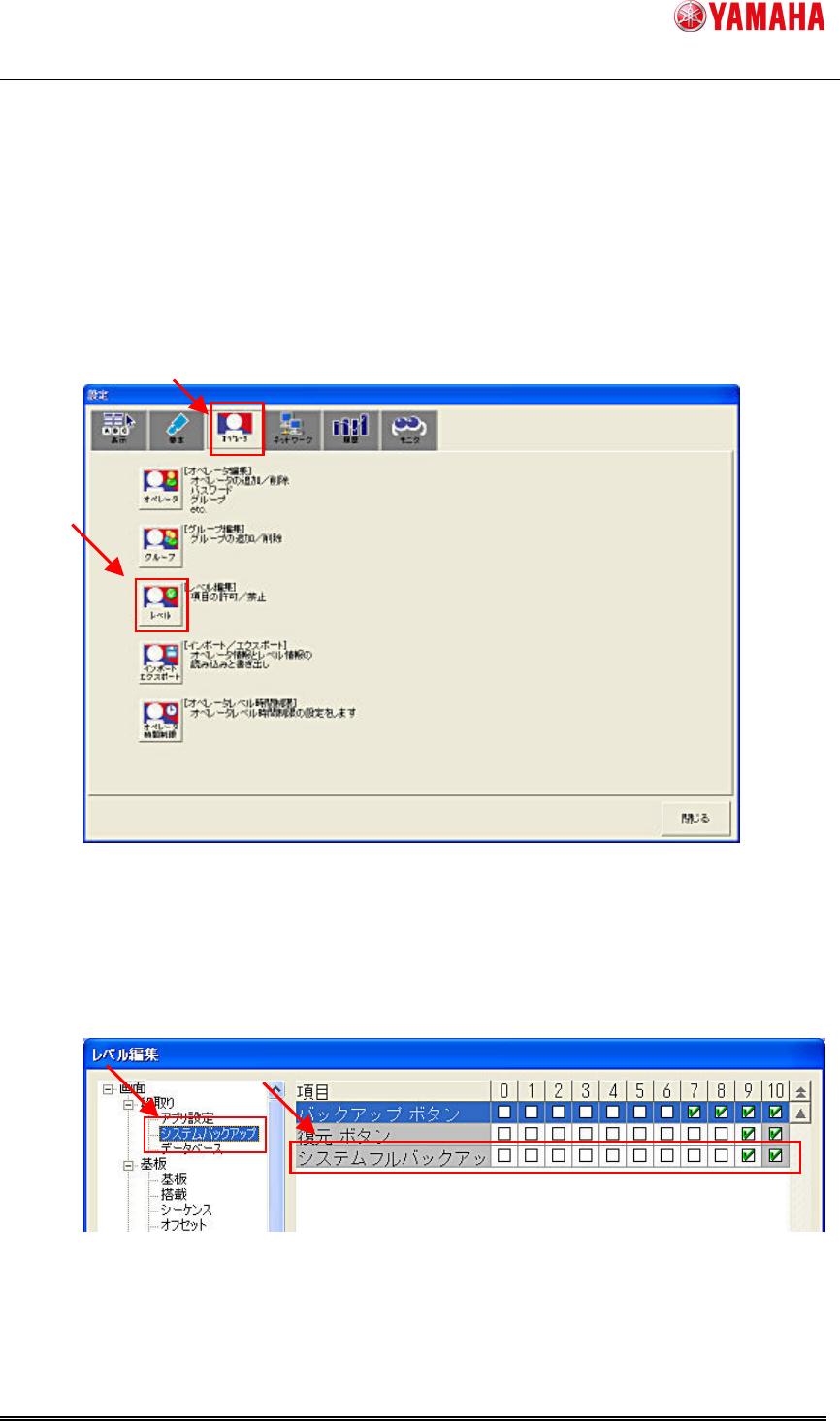 システムフルバックアップ機能が使用できるオペレータレベルを設定します。