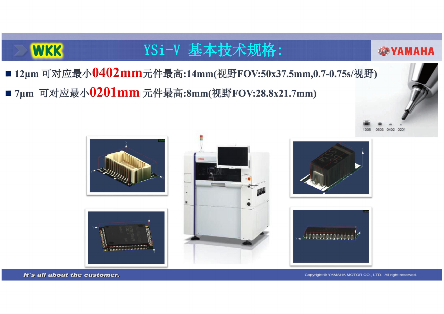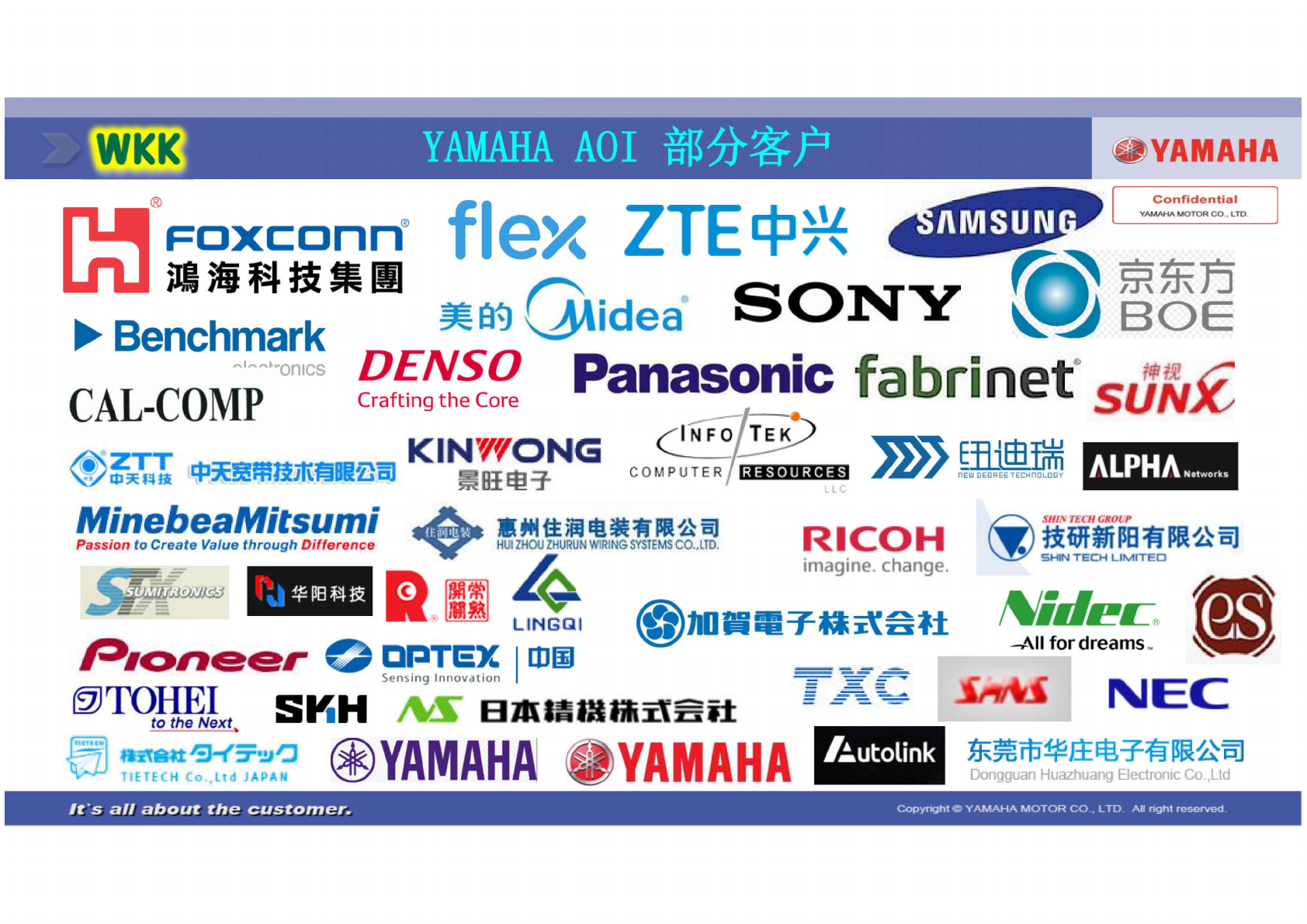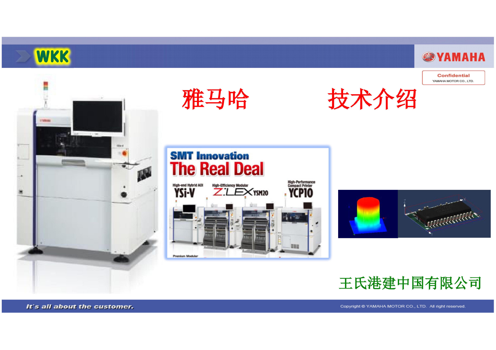 SEPL W14500 -00 V1.00 3D - A O I Y S i - V @YAMAHA 雅马哈 技 术介绍 Confidential YAMAHA MOTOR CO.. LTD. SMT Innovation The Real Deal 王 氏港建 中国有 限公司 ft's aH about the customer. Copyright © YAMAHA MOTOR CO., LTD. All right re…