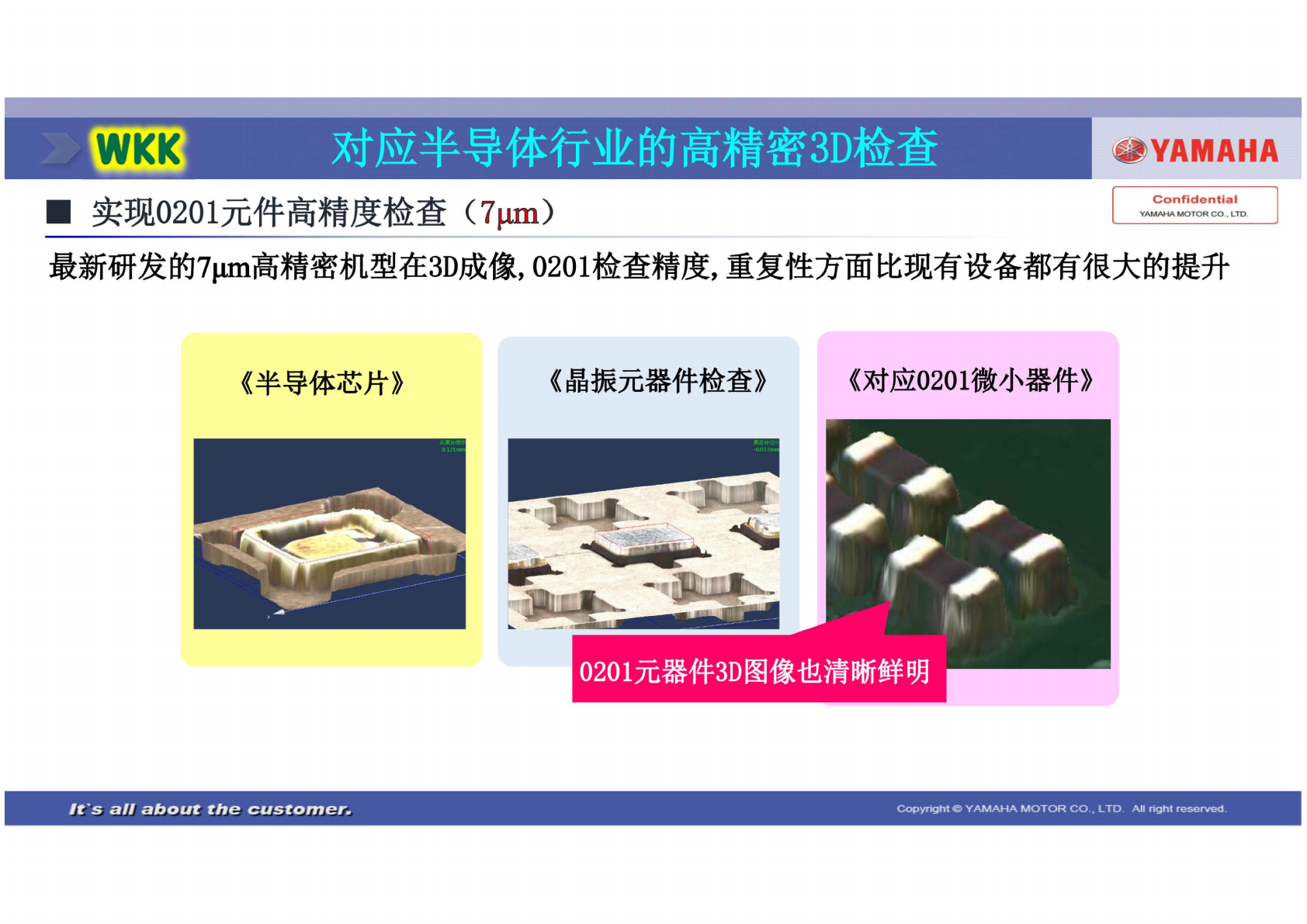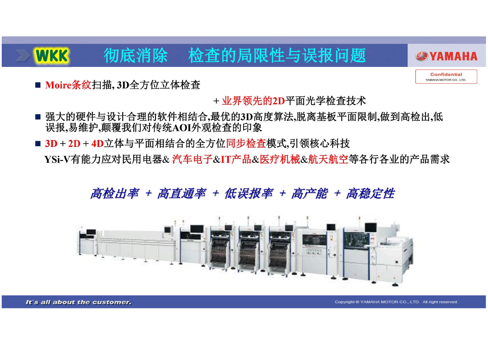 SEPL W14500 -00 V1.00 2D 5 SI1409 004E-000 ◼ Moir e , 3 D + 2D ◼ , 3D , , , , , AOI ◼ 3D + 2D + 4D , Y Si -V & & IT & & C333 彻 底消除 检 查的局 限性与 误报问 题 攀 YAMAHA Moire 条纹 扫描, 3D 全方 位立 体检查 Confidential YAMAHA MO…