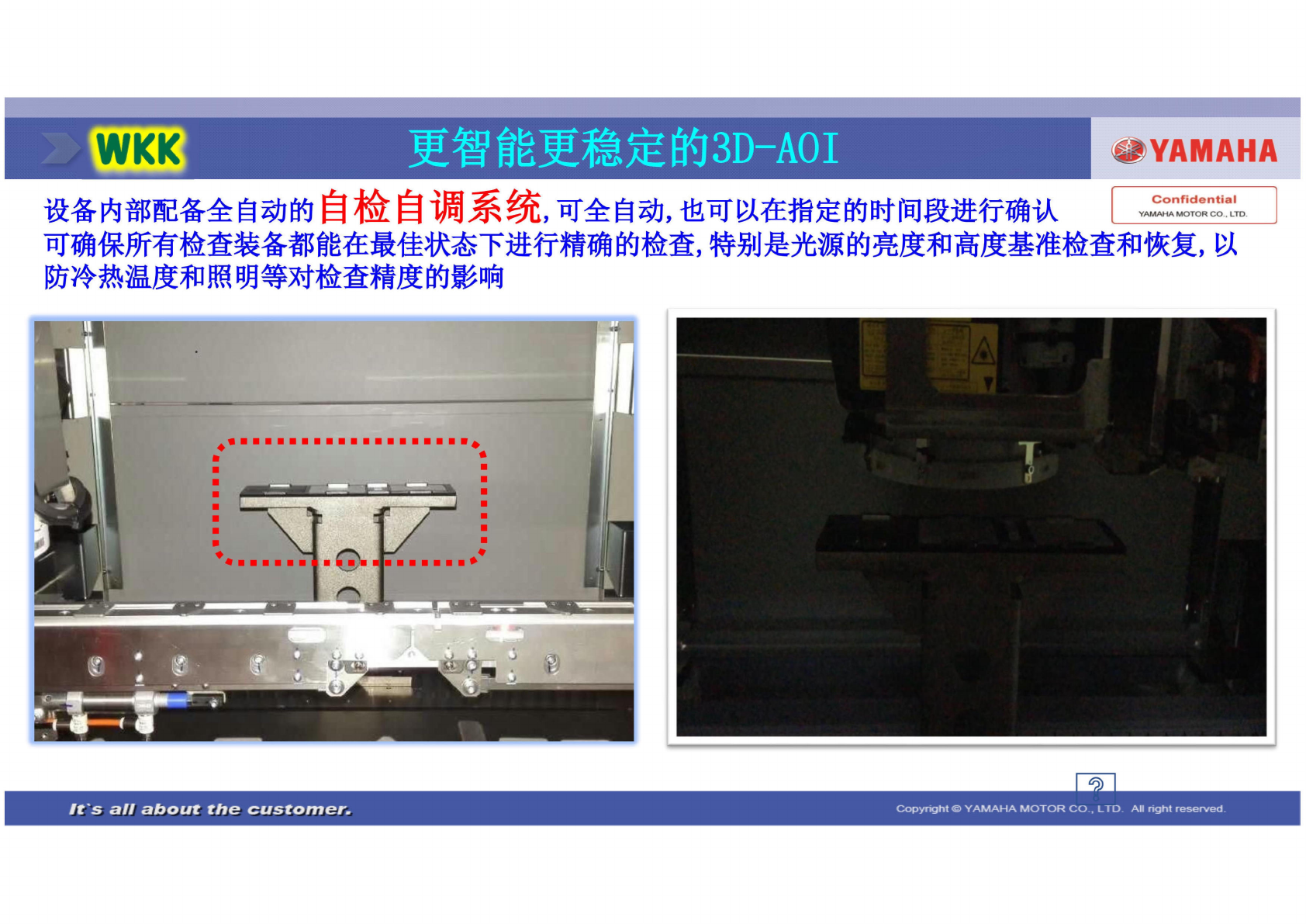 SEPL W14500 -00 V1.00 60 SI1409 004E-000 ◼ ◼ 更 智能更 稳定的 3D- AOI 攀 YAMAHA 设备 内部配 备全自 动的自 检自调 系统, 可全 自动, 也可 以在指 定的时 间段进 行确认 I P 震 震黑: 可 确保所 有检查 装备都 能在最 佳状态 下进行 精确的 检查, 特 别是光 源的亮 度和高 度基准 检查和 恢复, 以 防冷 热温度 和照明 等对检 查精度 的影响 ft&a…
