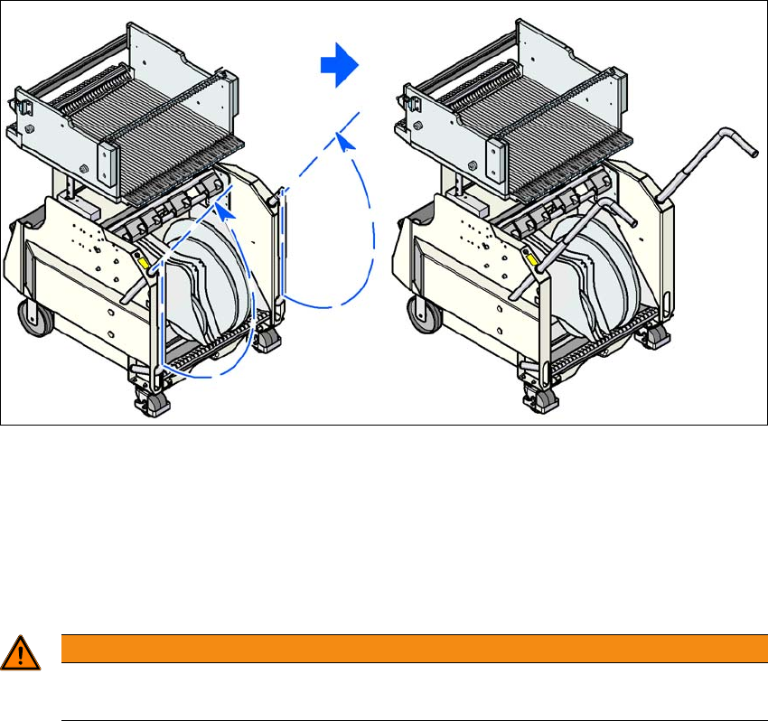 Võttes mõlema käega käepidemetest, tõmmake komponendikäru ladumismasina juurest ee-