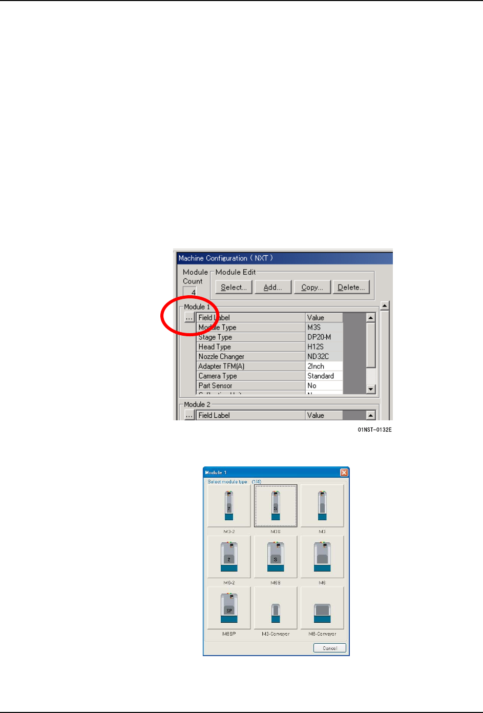 在 [Machine Configuration] 视窗的 [Module] 页面内,按照向导方式设定料站托架和工作