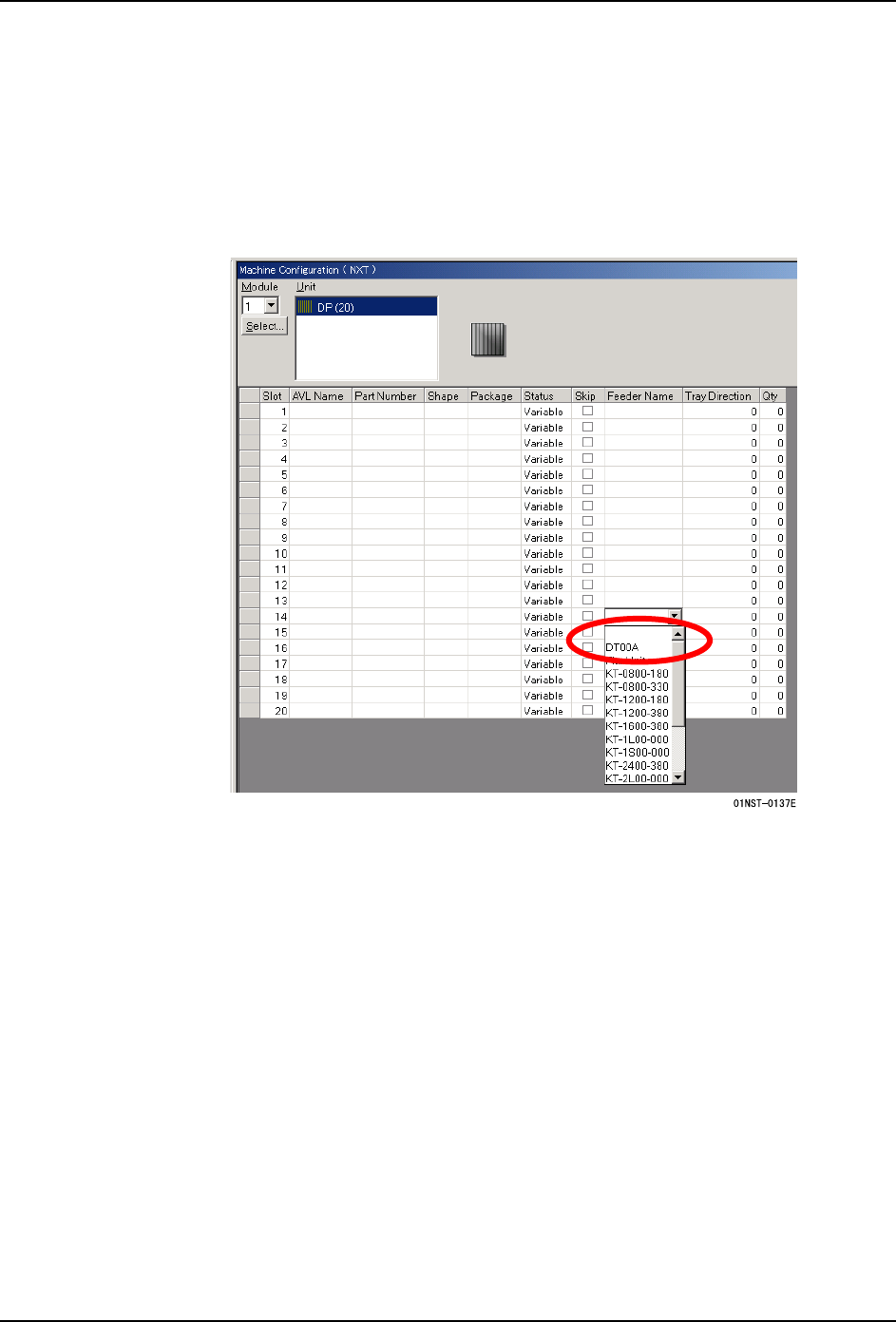 “Feeder Name” 的下拉菜单中选择 [DT00A]。