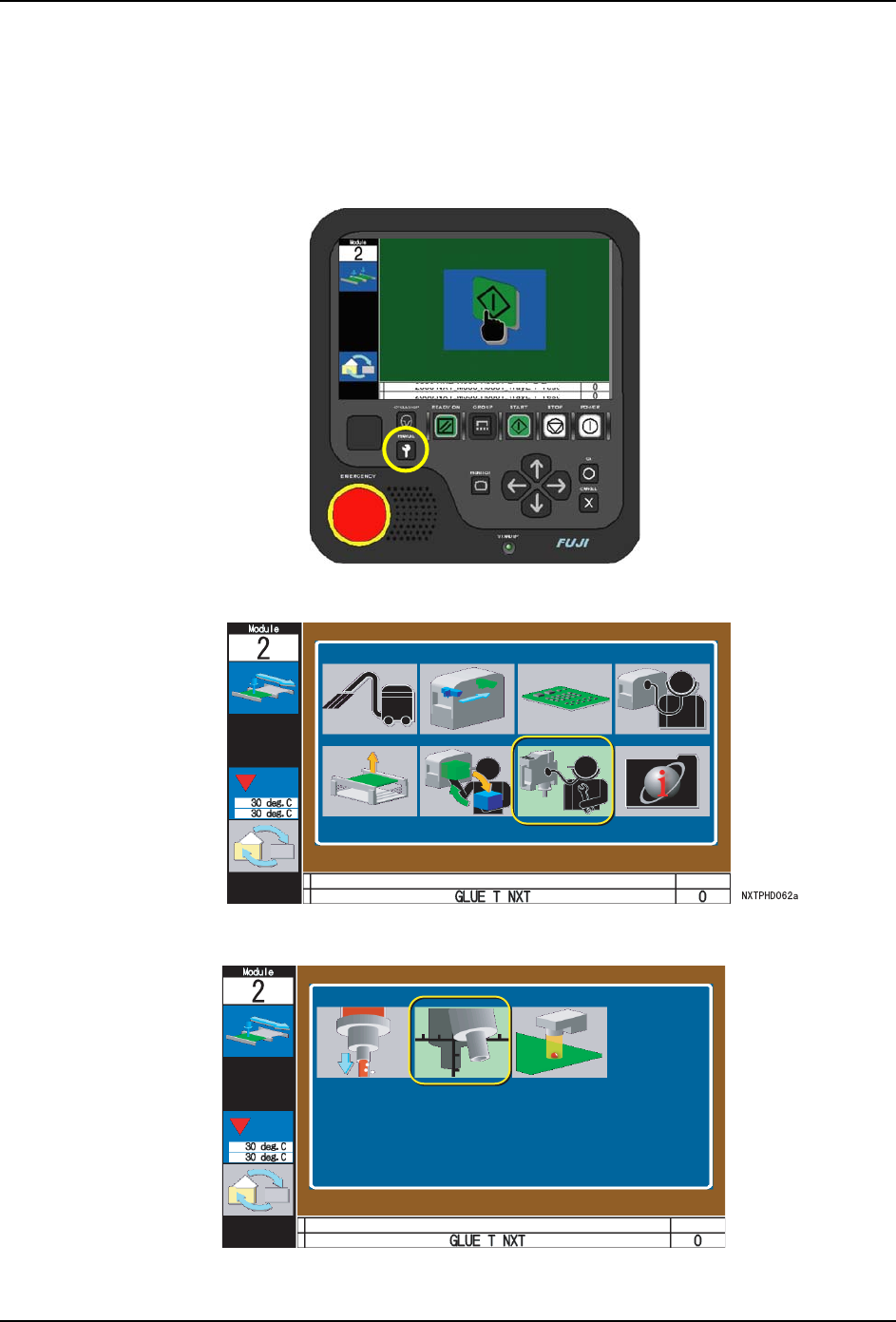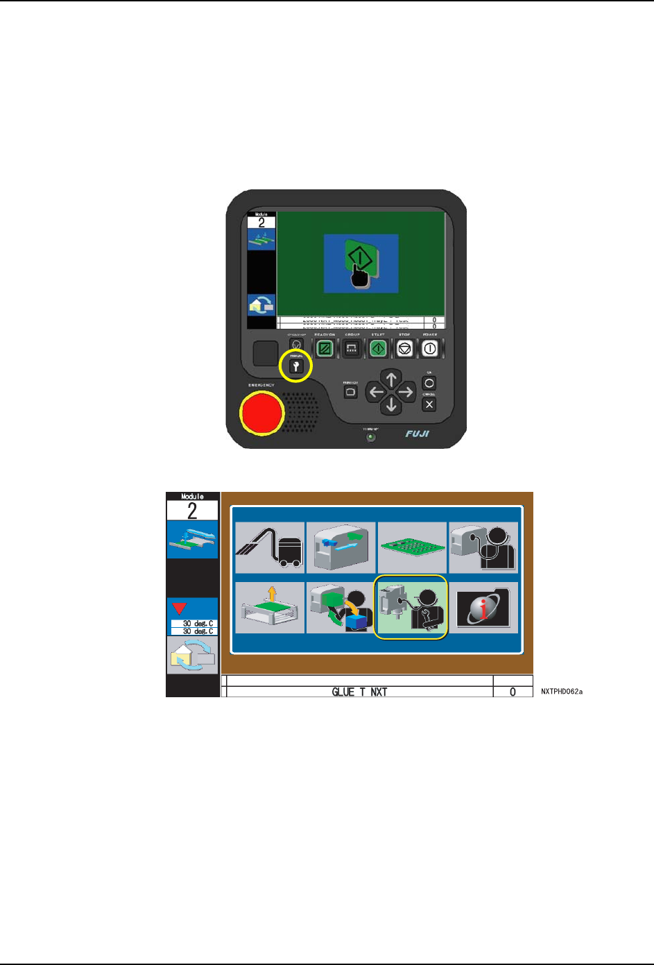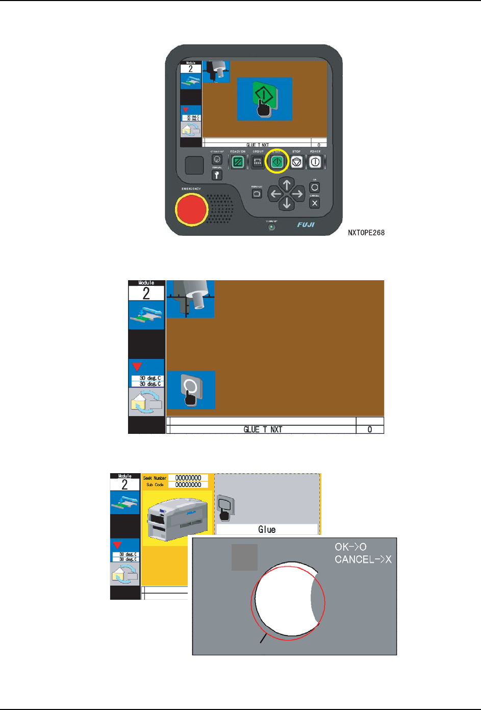 4. 按下 “START”。在 GCU 上涂敷几点胶着剂,自动测定点胶针偏移量。