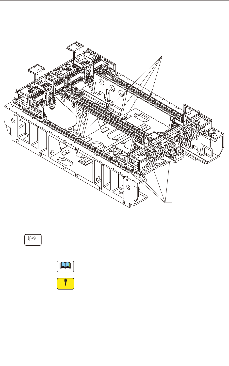 4OM-1733 1-4-39 4.8.3 Y -axis Linear Guide Check Cycle : Every Day (Required Time : 1 minute) Y-Axis Linear Guides Fig. 4A4-50 Procedure Check it visually that no alien substance has been dropped. If any alien substance …