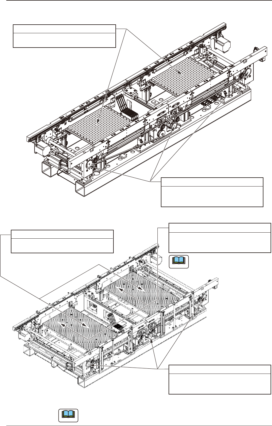 4OM-1733 1-4-43 4.9 PCB Positioning Section Ball Screws (3 locations) Every 3 Months Cleaning and Lubrication (DAPHNE EPONEX GREASE No. 1) Required Time: 10 minutes Upper Surface of Backup Table Every Week Cleaning Requi…
