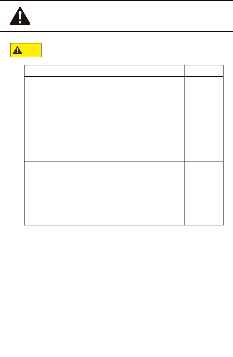 OM-1617 安全 - 7 3. 使用说明书中的警告标示 1 1 1 1-002 3. 使用说明书中的警告标示 此使用说明书中记载的注意事项和该记载处总结如下。 注意 警告内容 记载页 • 移动批量更换推车时,请握住手柄进行操作。 • 安装伸缩手柄时,请注意压坏手指。 3. 项 • 移动批量更换推车时,请注意避免撞脚。 • 请穿上保护脚尖的鞋或鞋底厚度为 10mm 以上的鞋进行作业。 3. 项 装卸时请避免带式送料器掉落。 根据送料器…