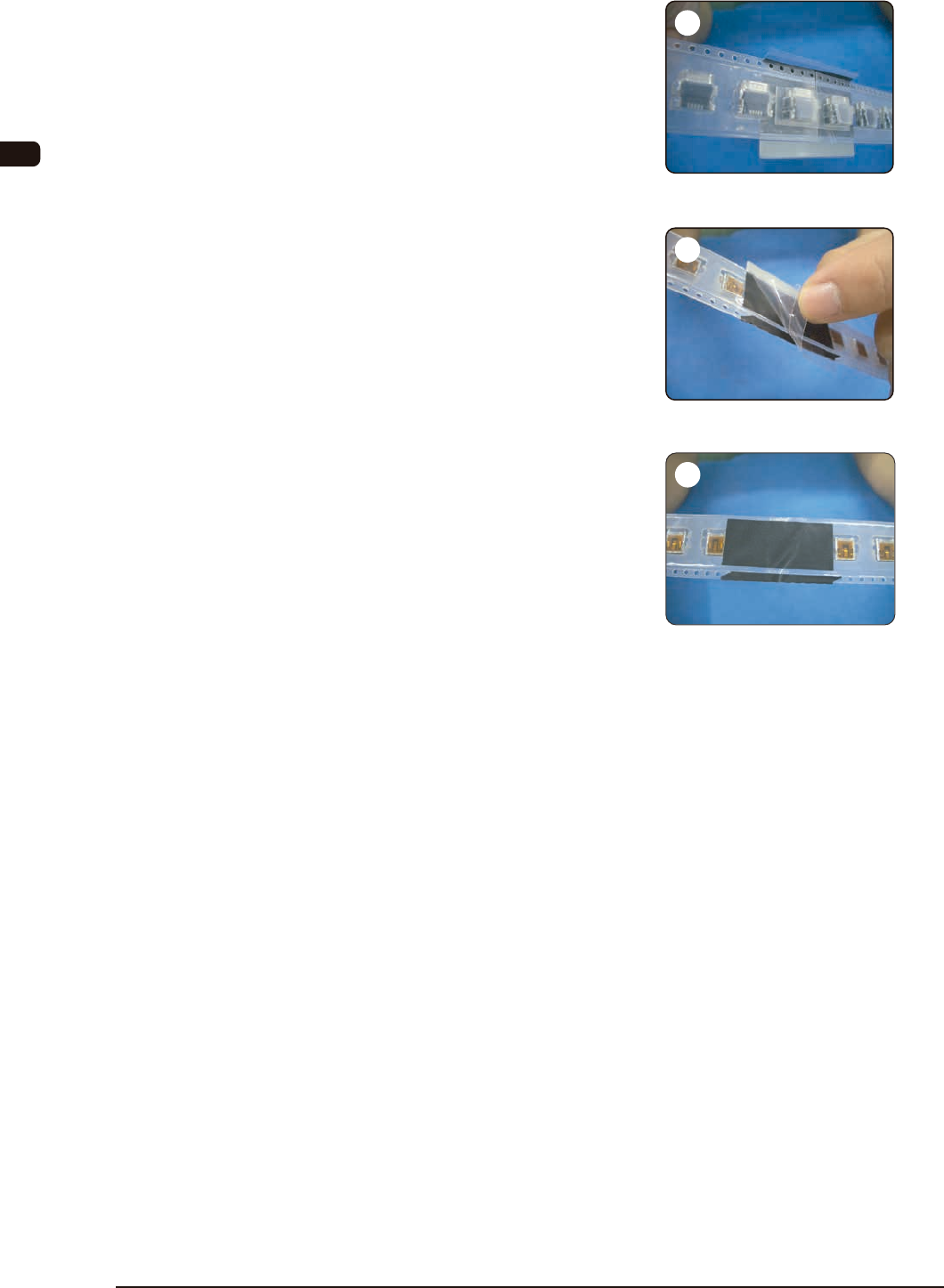 (1)按照各料带宽度的接合步骤,剪切新的料带和送料器侧的料带。