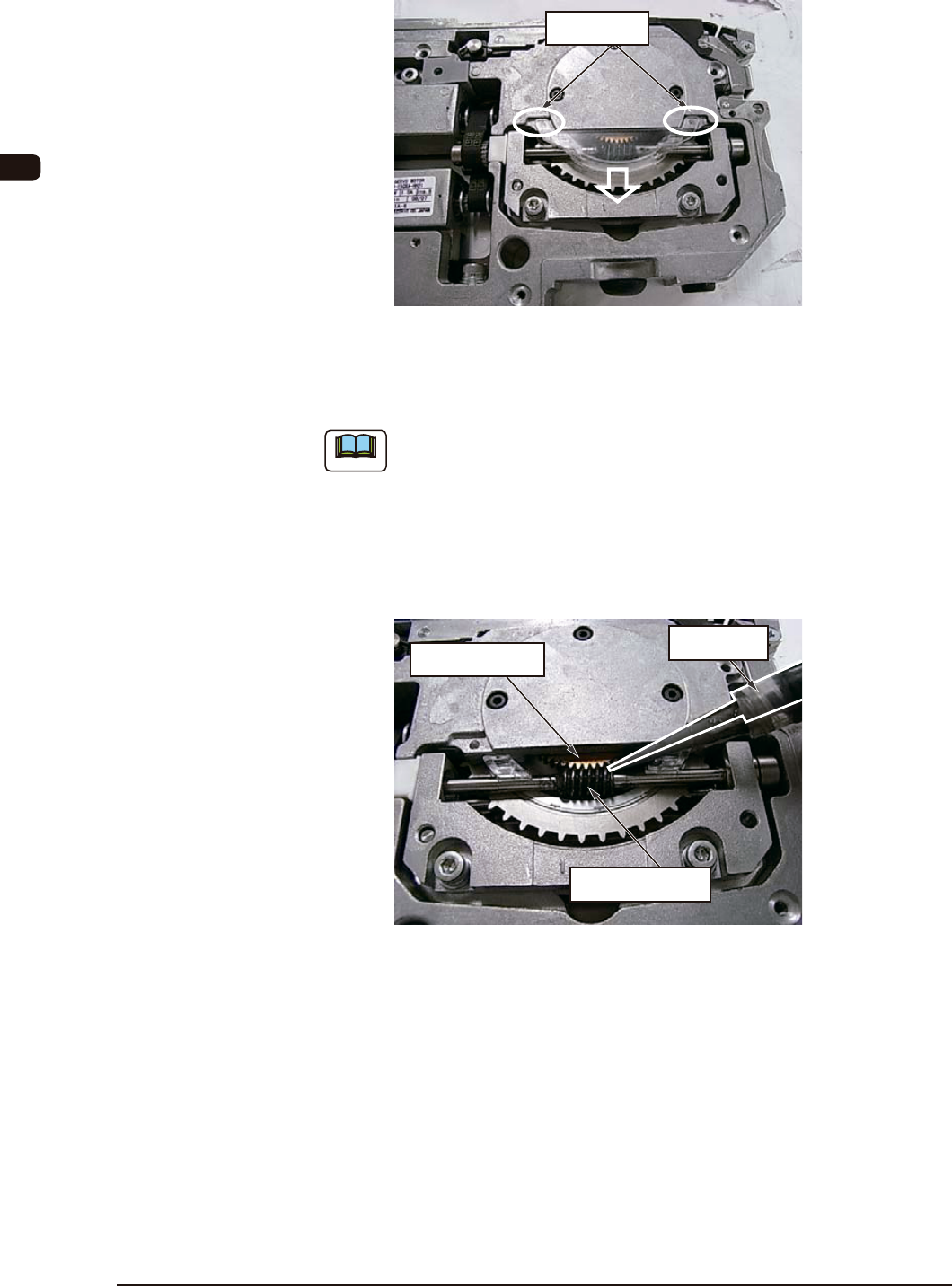 拆卸机盖时,卸下 2 处凸部 ( 上图白圈处 ) 后,向下策拽拉机盖。