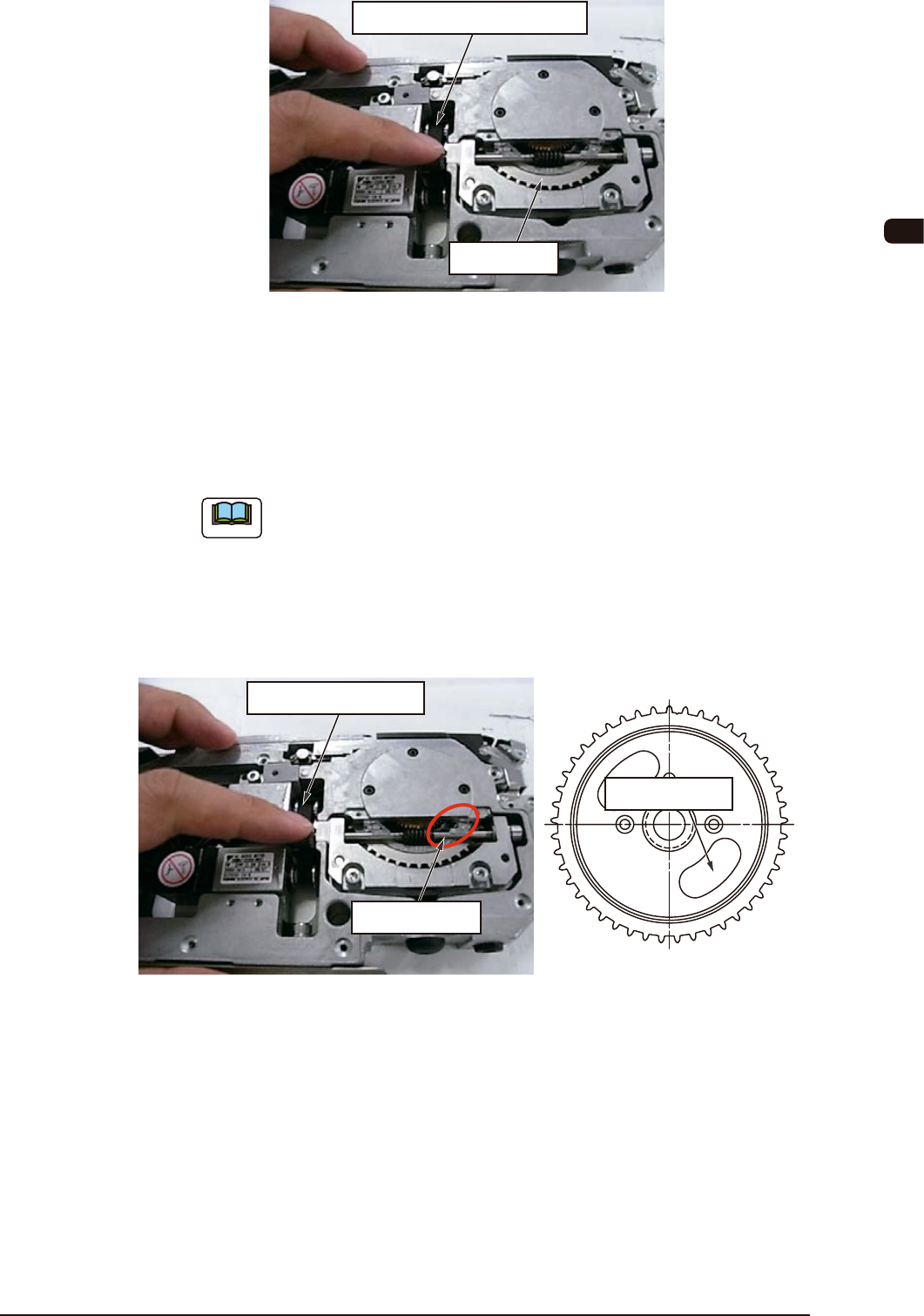 OM-1617 7-14 7. 维护保养 (5) 在左侧蜗轮齿轮、车轮注入润滑油。 使用注油治具,在右侧链轮齿孔到左侧蜗轮齿轮、车轮上直接涂刷润 滑油。( 涂刷量为 0.2ml 左右 ( 治具 2 刻度量 ))。 注油治具 FG17 注油时,一边旋转链轮齿,一边一点一点涂刷润滑油,以免润滑油聚 到一起。 ( 请在链轮齿旋转一周时,涂刷 4 处左右。) 左侧链轮齿 左侧链轮齿用定时带 左侧链轮齿 右侧链轮齿用定时带 FG18 Note (…