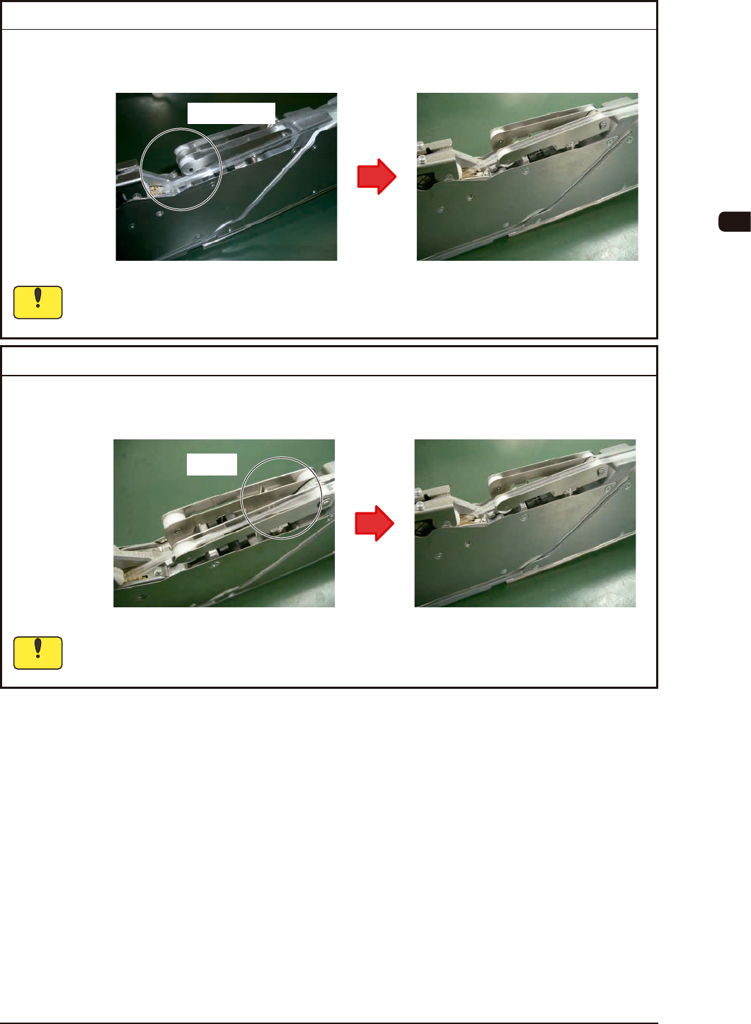 OM-1617 1 1-8 11. 故障处理 处理方法 : 请拆卸盖子,将异物清除。 要 因 : 卷带齿轮有片状元件或垃圾等异物啮入。 片状元件或垃圾等异物 091 1-001