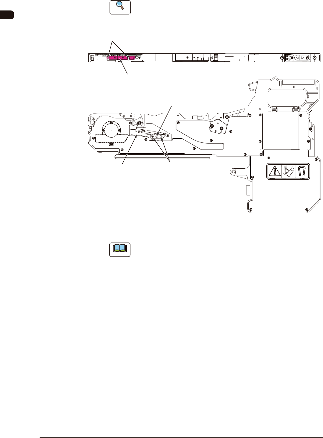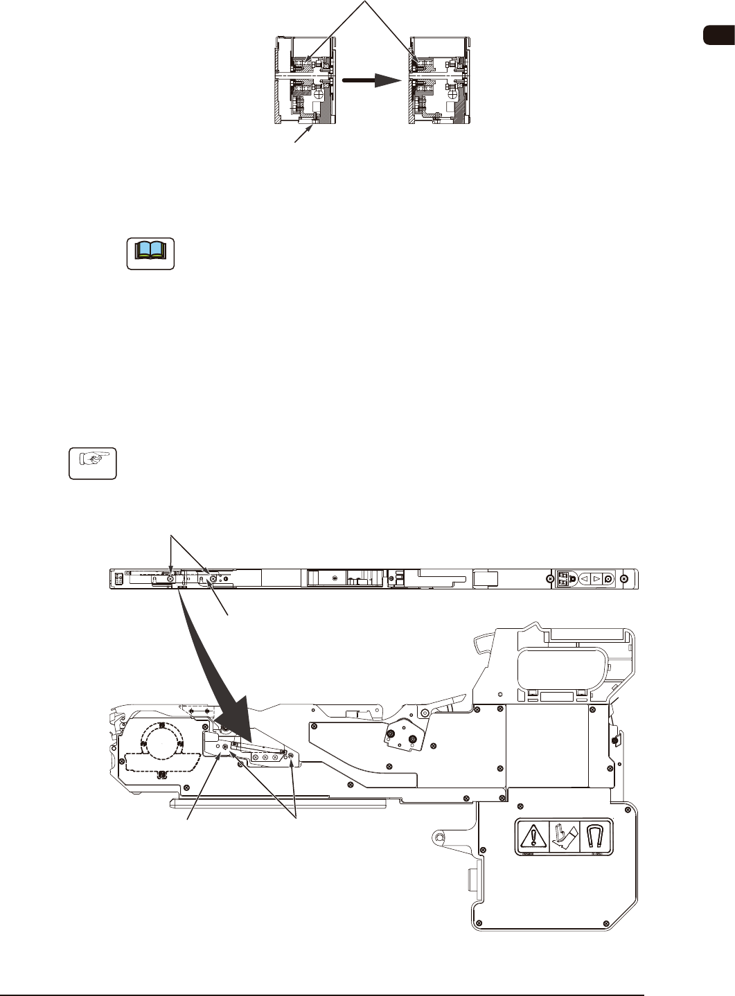 (2) 拆卸安装在辅助抑制器收纳部的固定螺钉 ( 圆头螺钉 ),安装料带引导