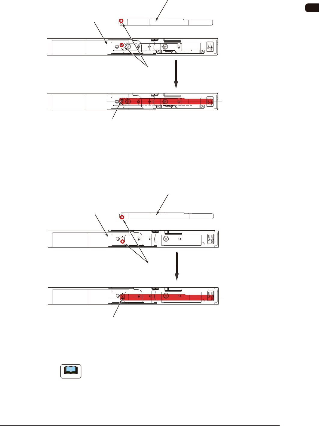 OM-1617 2. 料带的安装及拆卸方法 2-35 使用 12mm 宽料带时的磁铁板安装 对准 12mm 宽料带专用的固定孔位置,固定磁铁板位于滑道中心。 磁铁板 滑道部 滑道中心位置 固定孔位置 固定螺钉 (平顶埋头螺钉) FB46 使用 16mm 宽料带时的磁铁板安装 对准 16mm 宽料带专用的固定孔位置,固定磁铁板位于滑道中心。 磁铁板 滑道部 固定孔位置 滑道中心位置 固定螺钉 (平顶埋头螺钉) FB47 Note 使用…