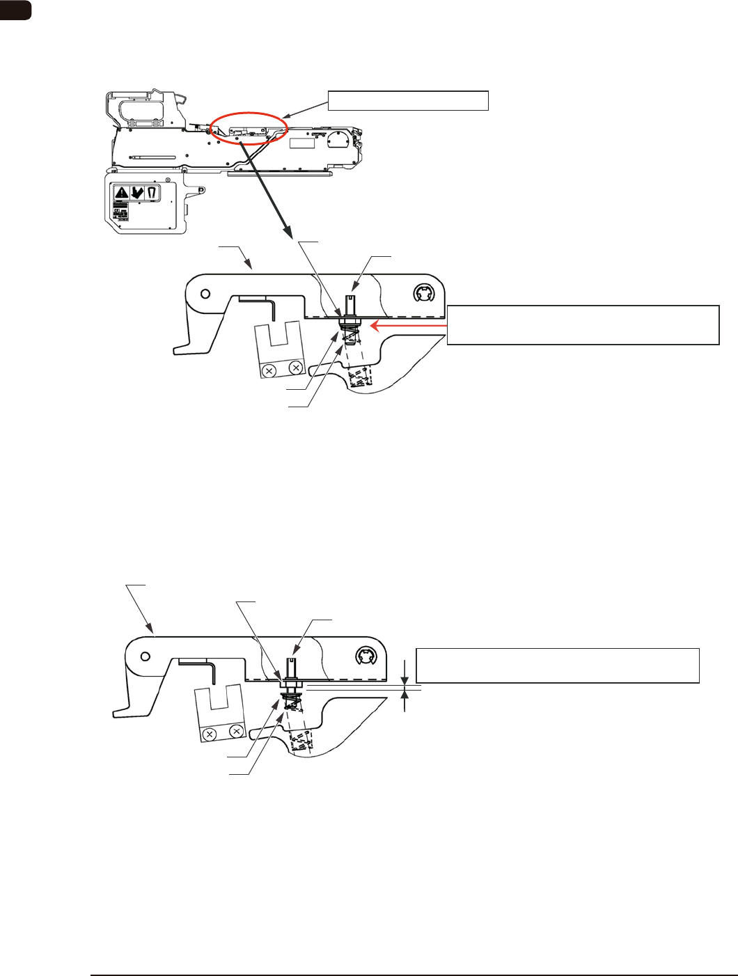 多发这种异常时,如下图所示变更张紧力控制杆部弹簧的设定。