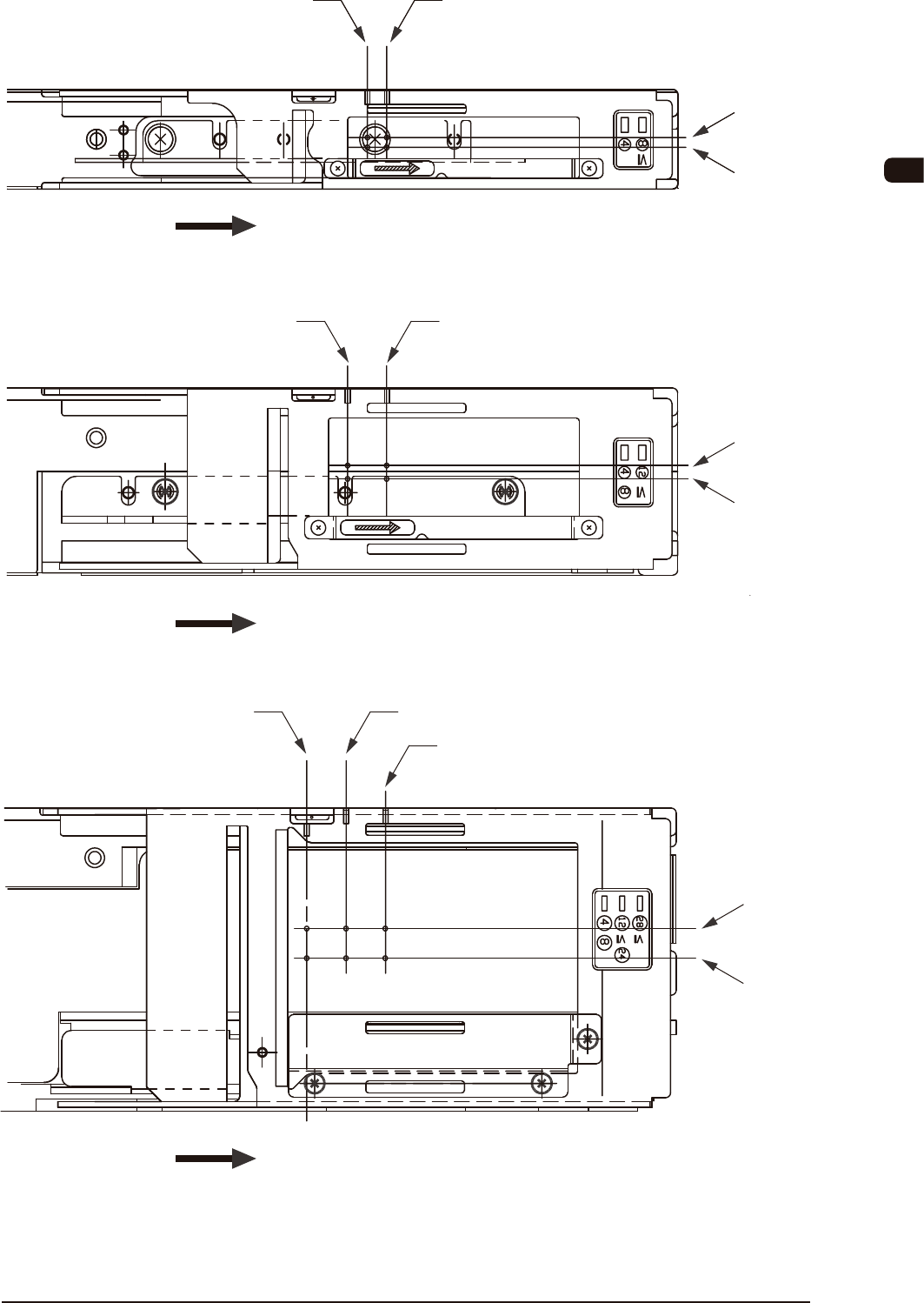OM-1617 5. 片状元件的吸取位置对齐 5-3 传送方向 GT-24322, GD-24322 12、16、20、24mm间距时的吸取位置 32mm宽料带 吸取位置 24mm宽料带 吸取位置 4、8mm间距时的吸取位置 传送方向 GT-44562、GD-44562 12、16、20、24mm间距时的吸取位置 28、32、36、40mm间距时的吸取位置 56mm宽料带 吸取位置 44mm宽料带 吸取位置 4、8mm间距时的吸取位置 …