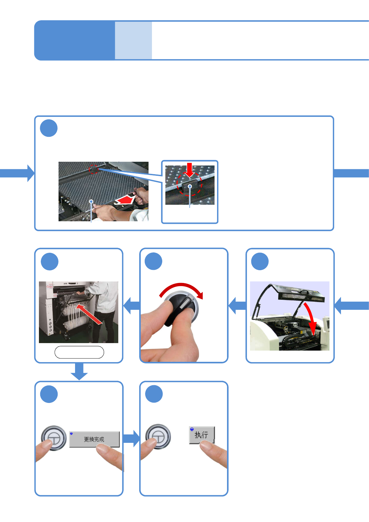 NPM-W2 EJM7DC-MB-05M-00 5-3-1 -2 每 1 4 0 小 时 保 养 定 期 检 查 确认提示 卸下交换台车 ( → P.3-2) 前侧 OFF SERVO ENABLING 1 ENABLING 2 4 3 6 5 8 锁杆 7 把料架工作台盖往 内推 ( 前侧 / 后侧的 X 轴移动到退 避位置 ) ( 基板支撑块上升 ) 用棉纱布盖在多功 能识别照相机上 按住锁杆往下推 顺序 9 ●请不要倚靠在料架工 …