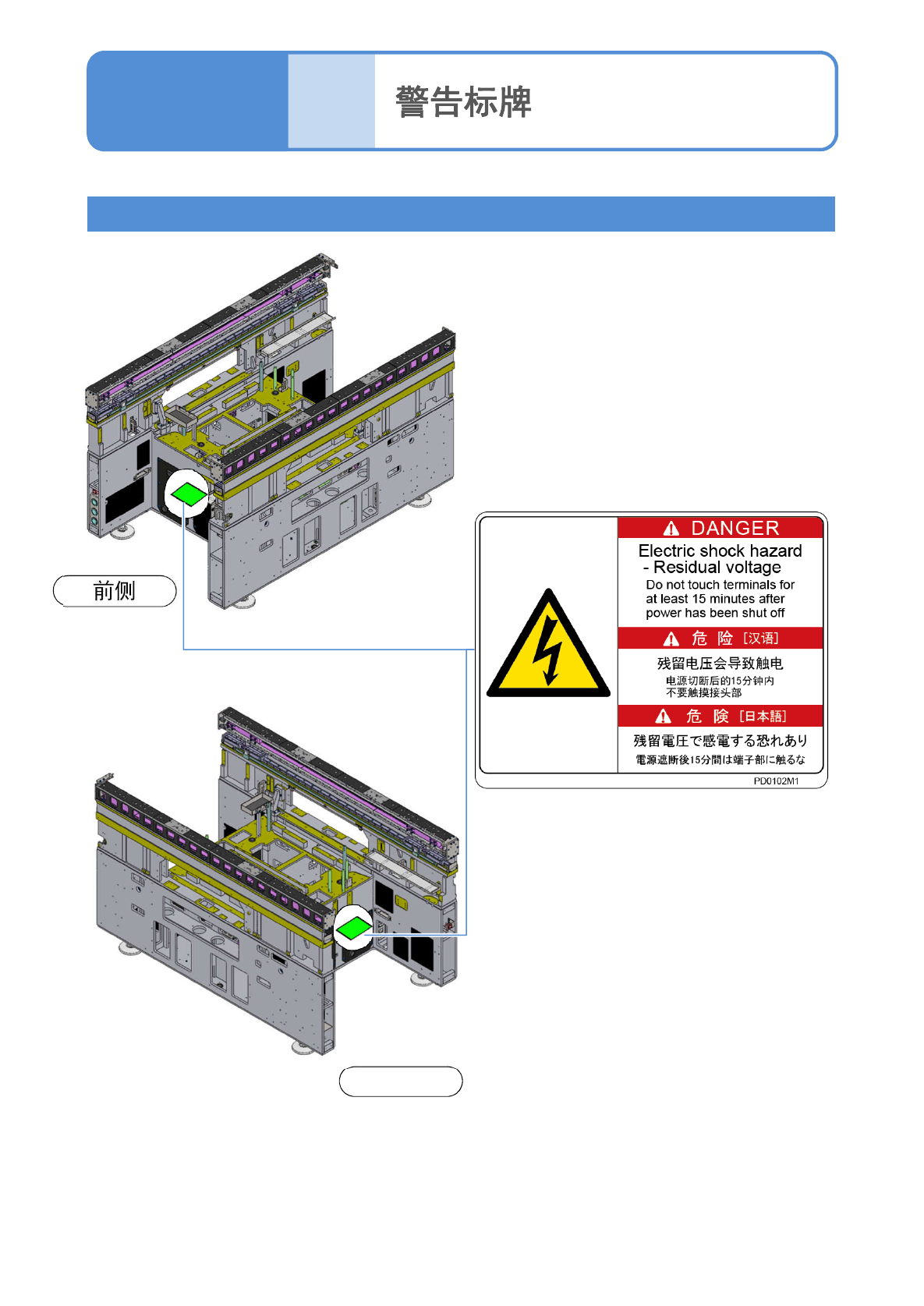 ●此标牌粘贴在设备内部的架台底面上。