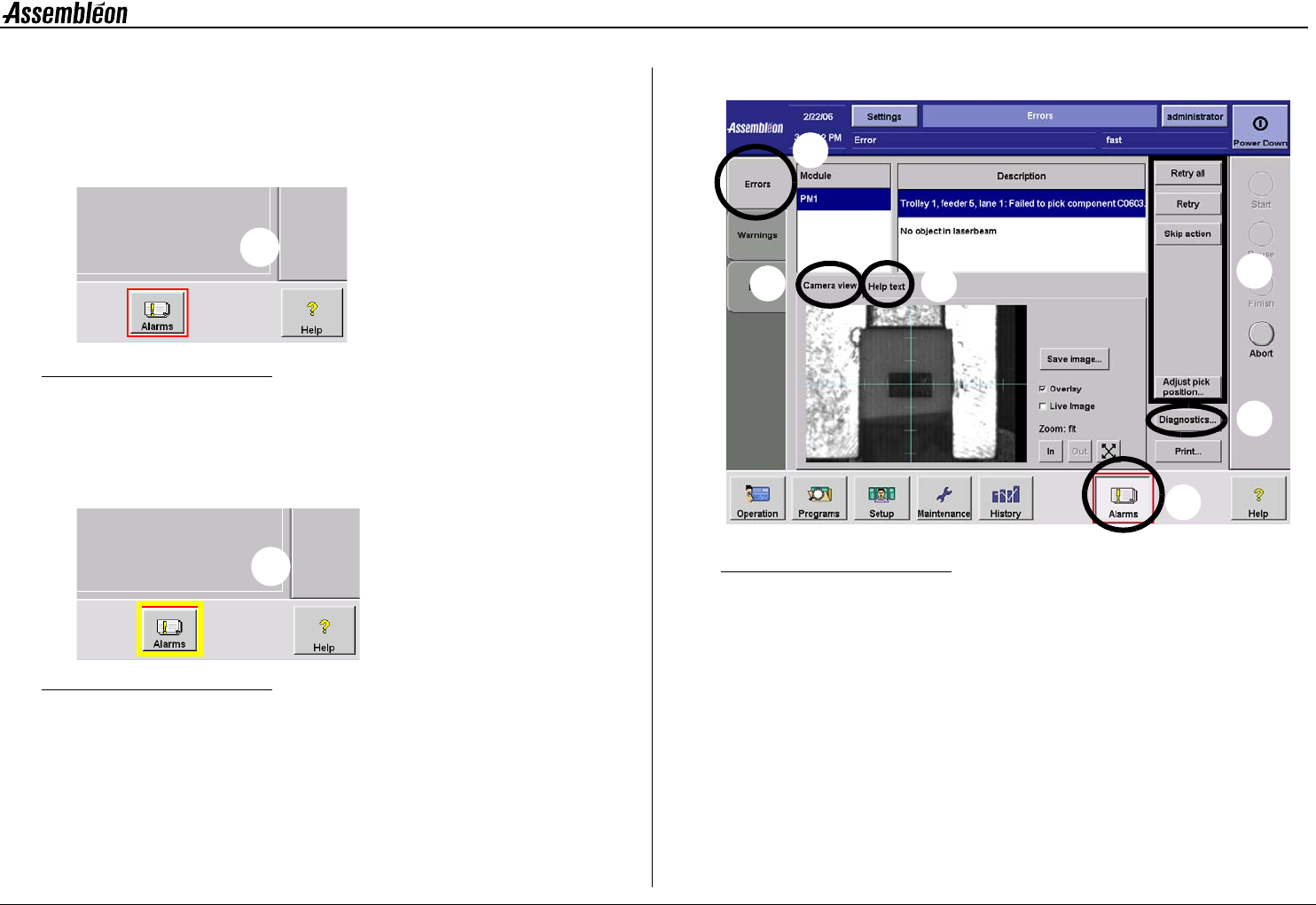警报按钮周围显示的彩色边框表示机器或流程出现故障: