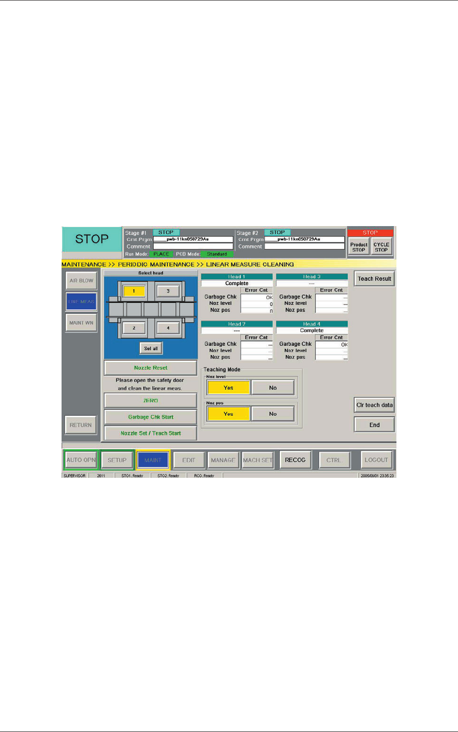 2) Select the head whose linear measure sensor should be cleaned.